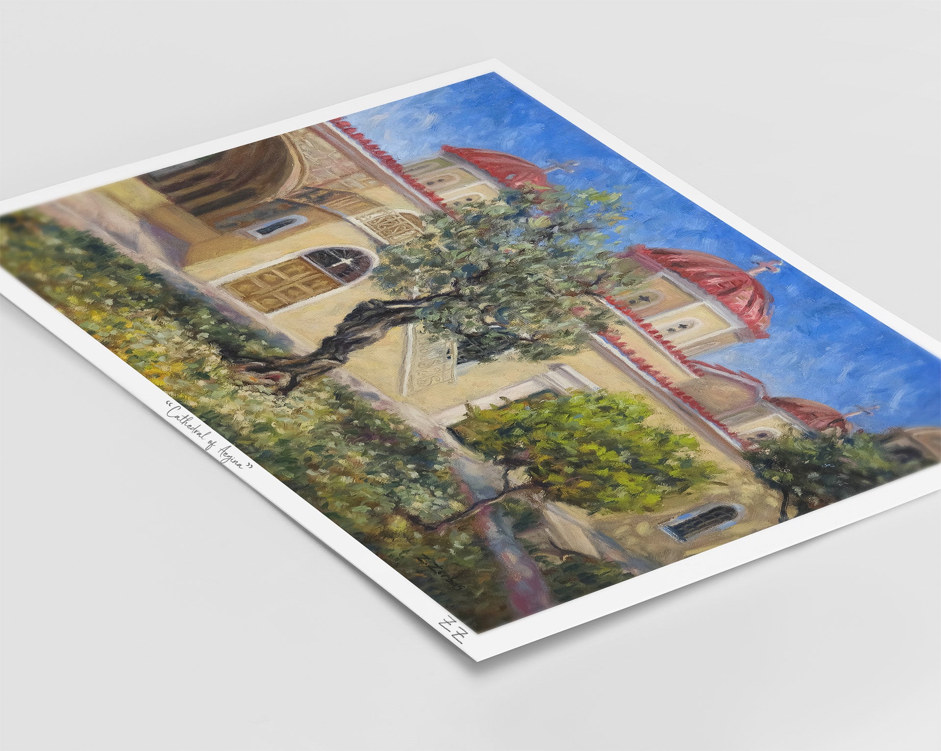 • Ανοιχτή εκτύπωση της πρωτότυπης ελαιογραφίας «Καθεδρικός Ναός της Αίγινας» του Ζαχαρία Ζορμπά