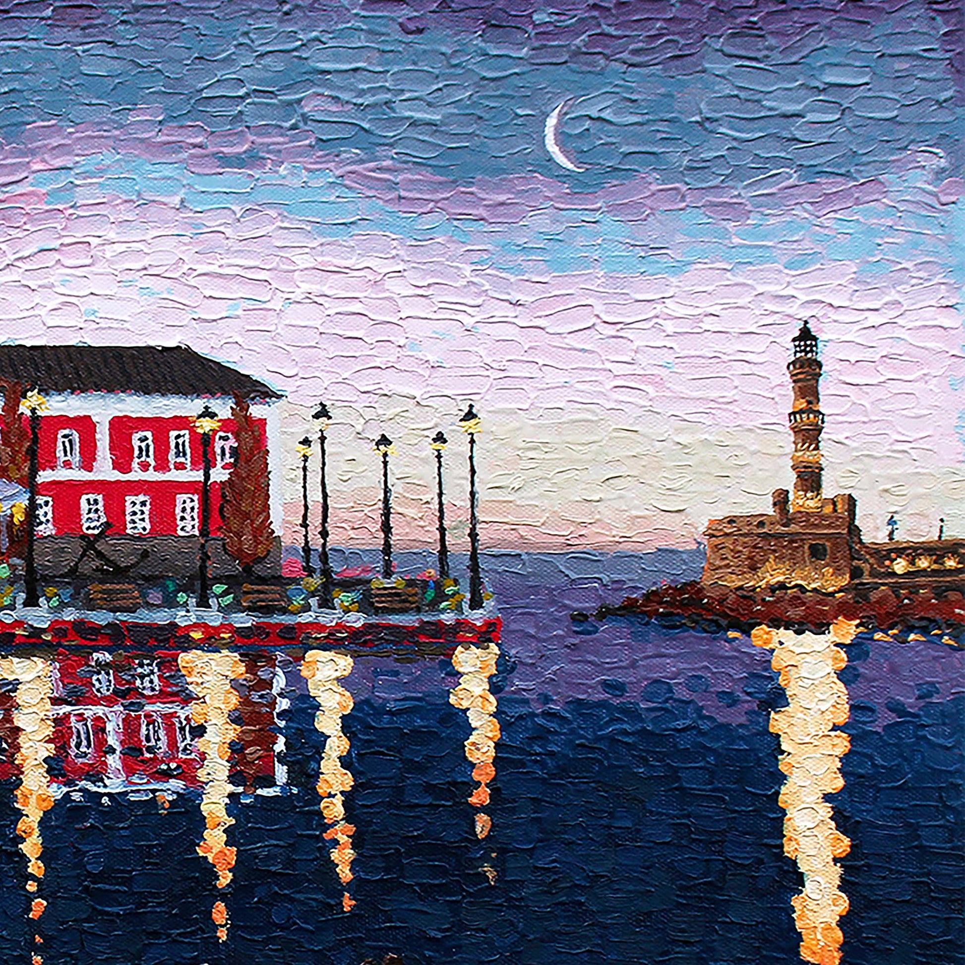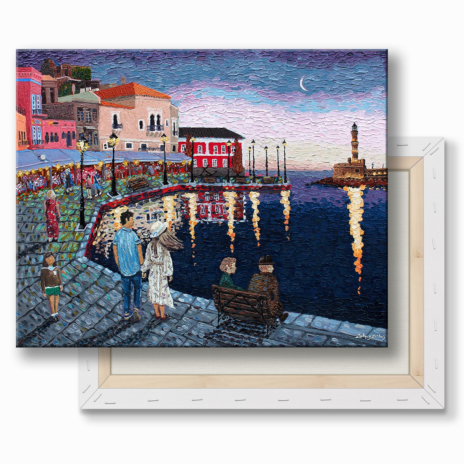 - Εικόνα τυπωμένη από εκτυπωτή inkjet σε καμβά της πρωτότυπης ελαιογραφίας "Μια νύχτα στα Χανιά" του Ζαχαρία Ζορμπά