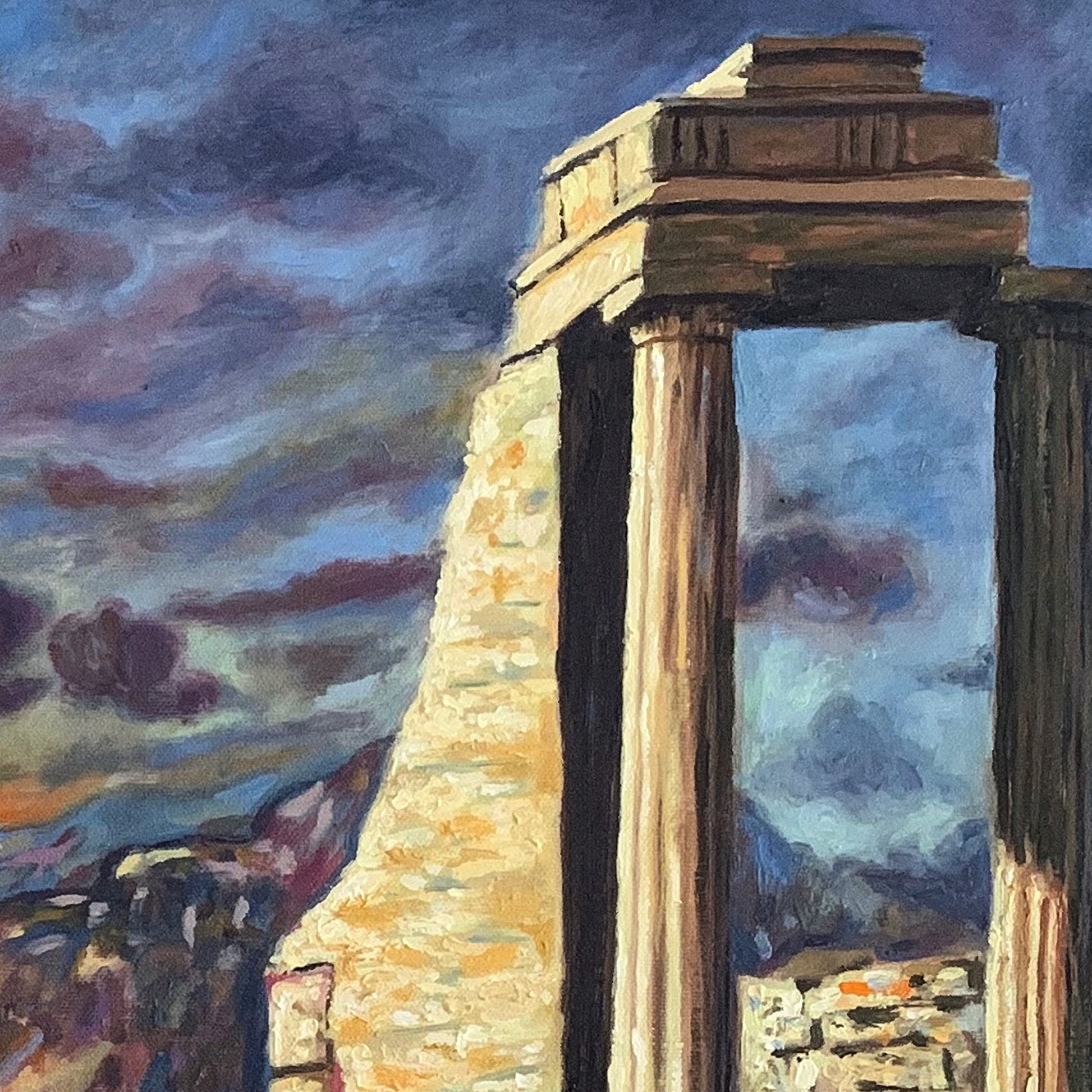Ένας πίνακας που έφτιαξα βασισμένος σε ένα ταξίδι που έκανα με τη σύζυγό μου στη Ρόδο. Οδηγήσαμε μέχρι τη Λίνδο, η οποία βρίσκεται νότια της πρωτεύουσας της Ρόδου. Ήταν ο συνηθισμένος καιρός, τέλειος και ηλιόλουστος. Αφού πάρκαρα το αυτοκίνητο, κοίταξα ψηλά στην υπέροχη και επιβλητική ακρόπολη που βρίσκεται στην κορυφή. Με τι θαύματα έχει ευλογήσει η Ελλάδα τον κόσμο.
