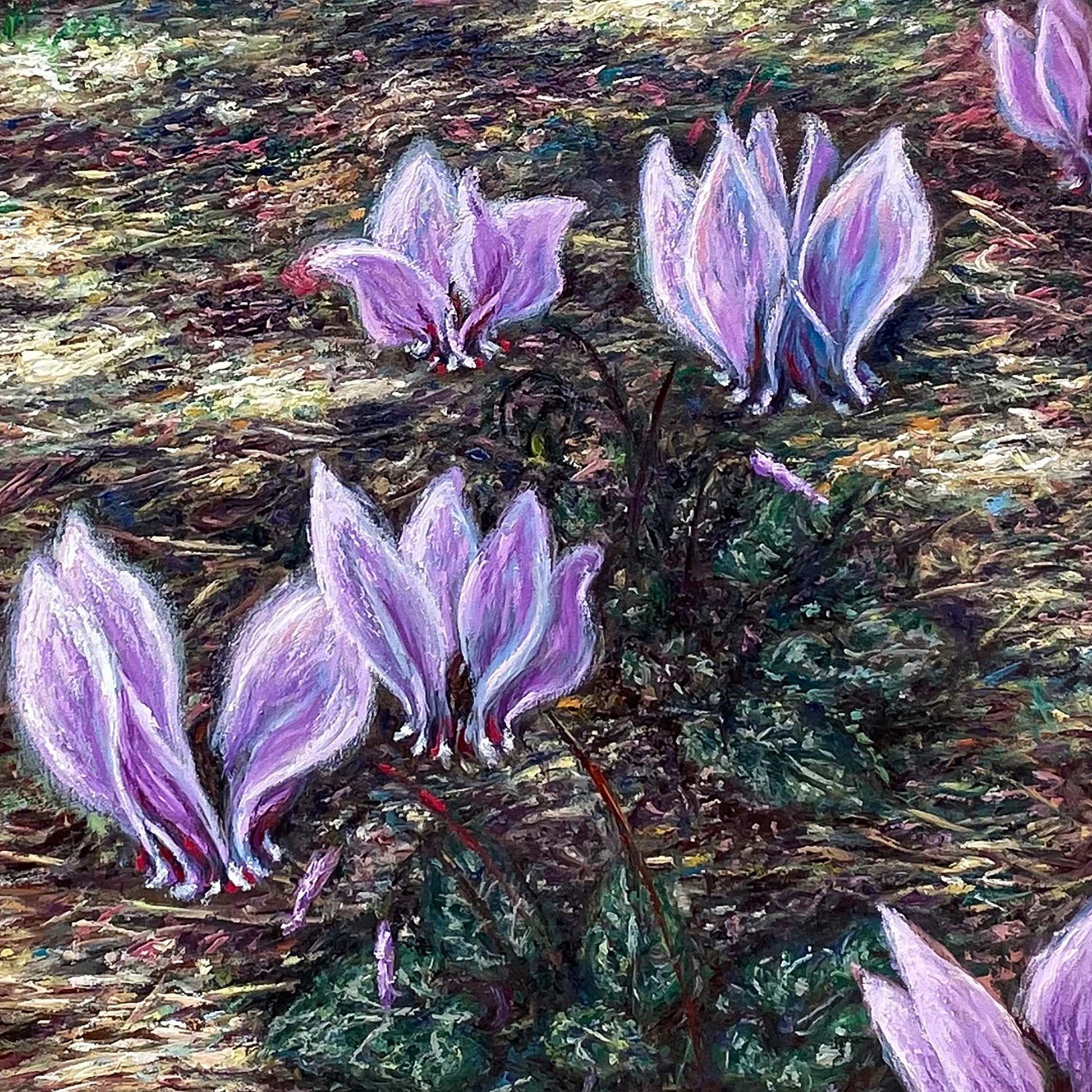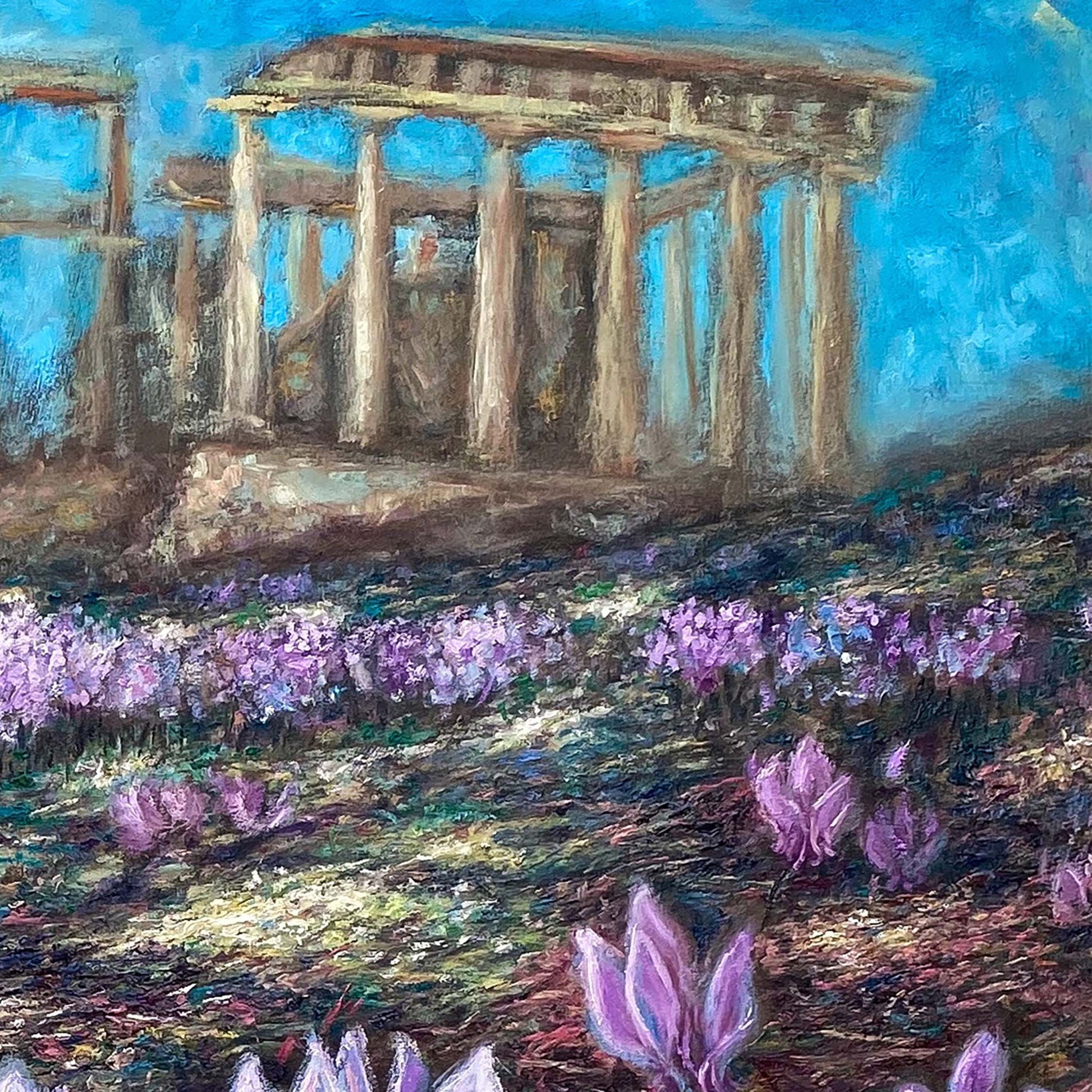 - Ανοιχτή εκτύπωση της πρωτότυπης ελαιογραφίας "Κυκλάμινα λουλούδια στον ναό της Αφαίας" του Ζαχαρία Ζορμπά