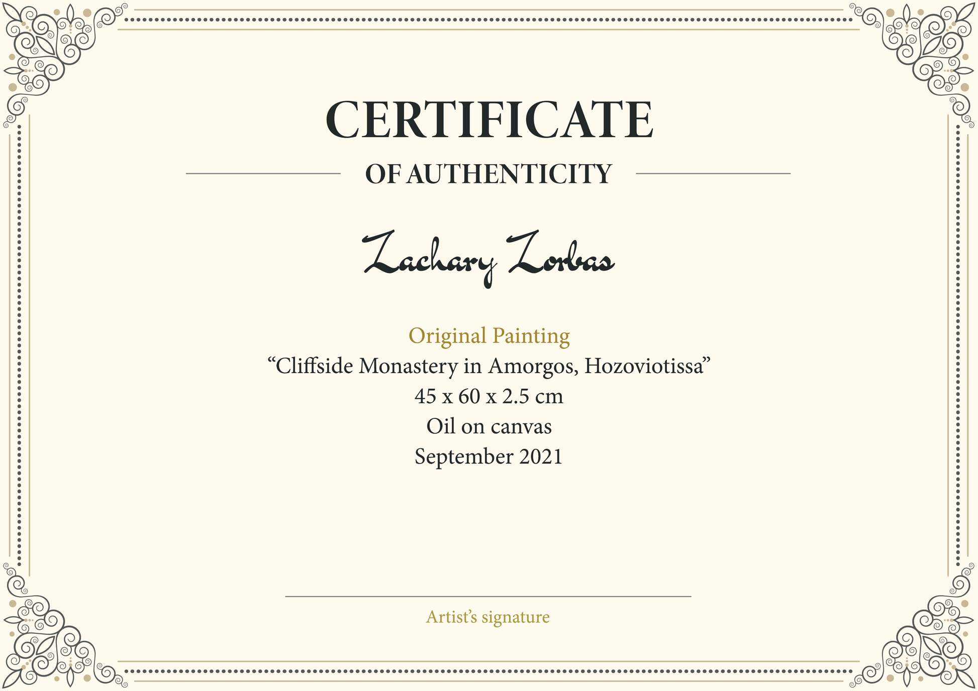 - Πρωτότυπος πίνακας του Ζαχαρία Ζορμπά με τίτλο «Μονή Cliffside στην Αμοργό» χειροποίητος στην Αθήνα, Ελλάδα