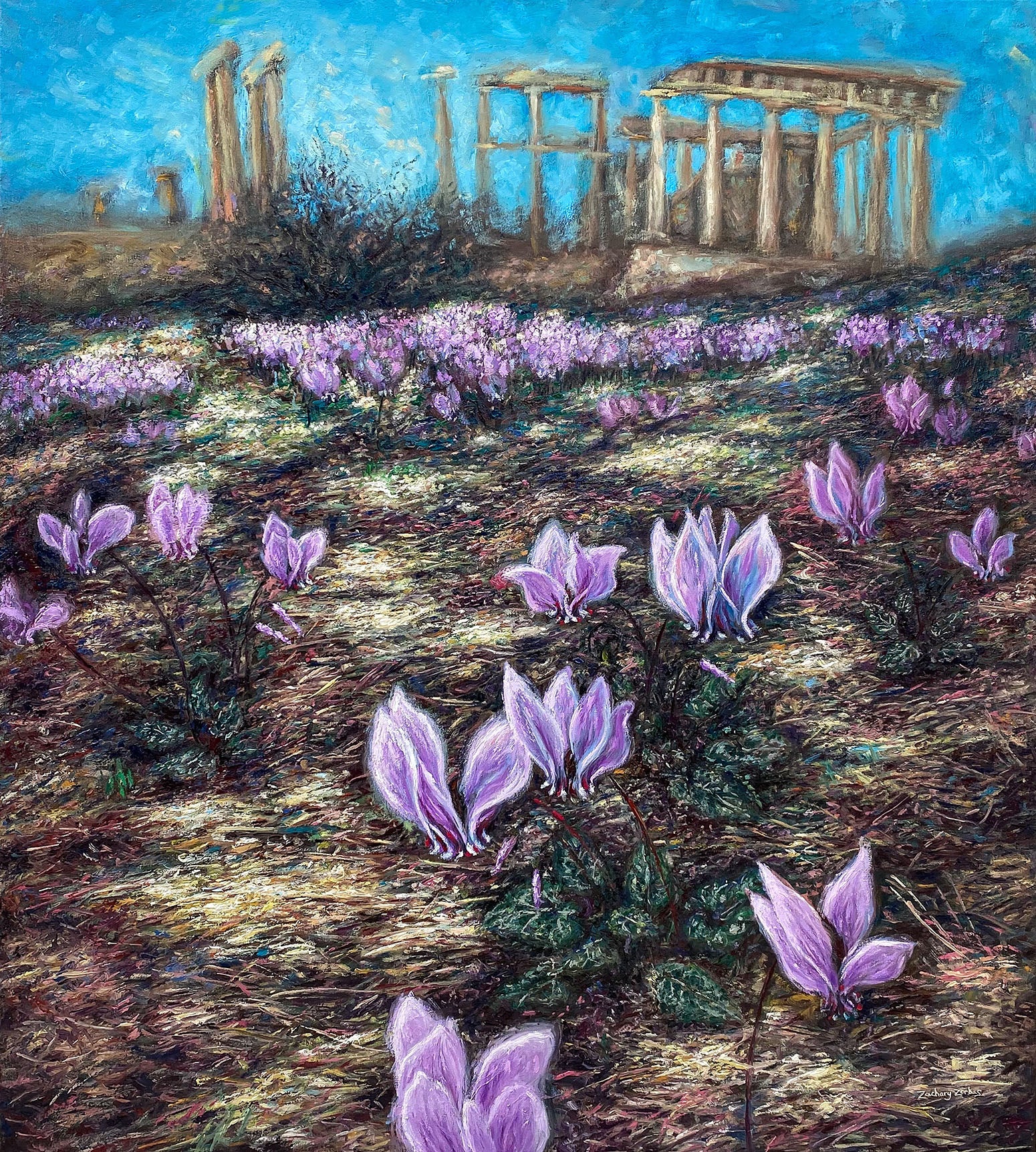 Πρωτότυπος πίνακας: Άνθη κυκλάμινων στον ναό της Αφαίας
