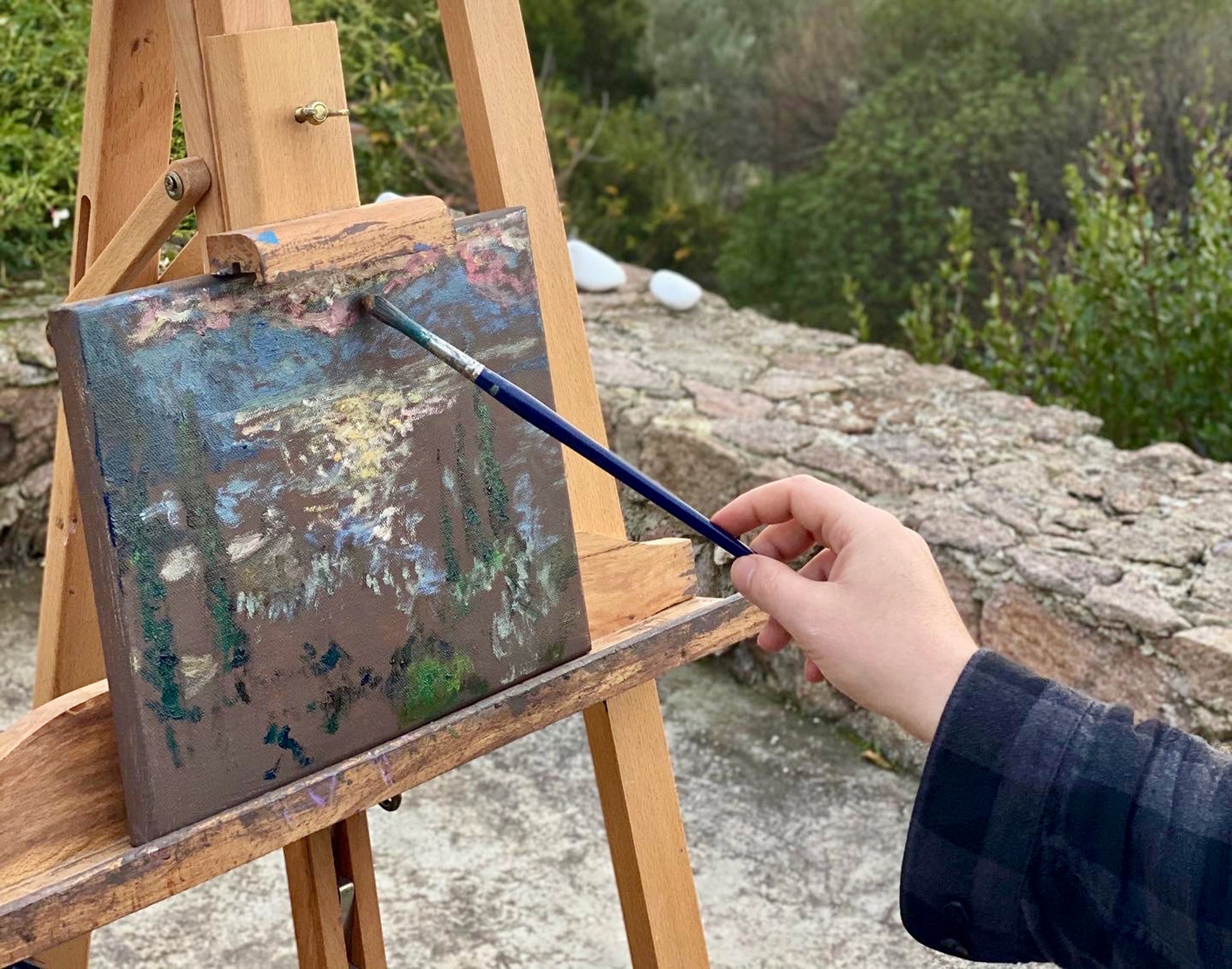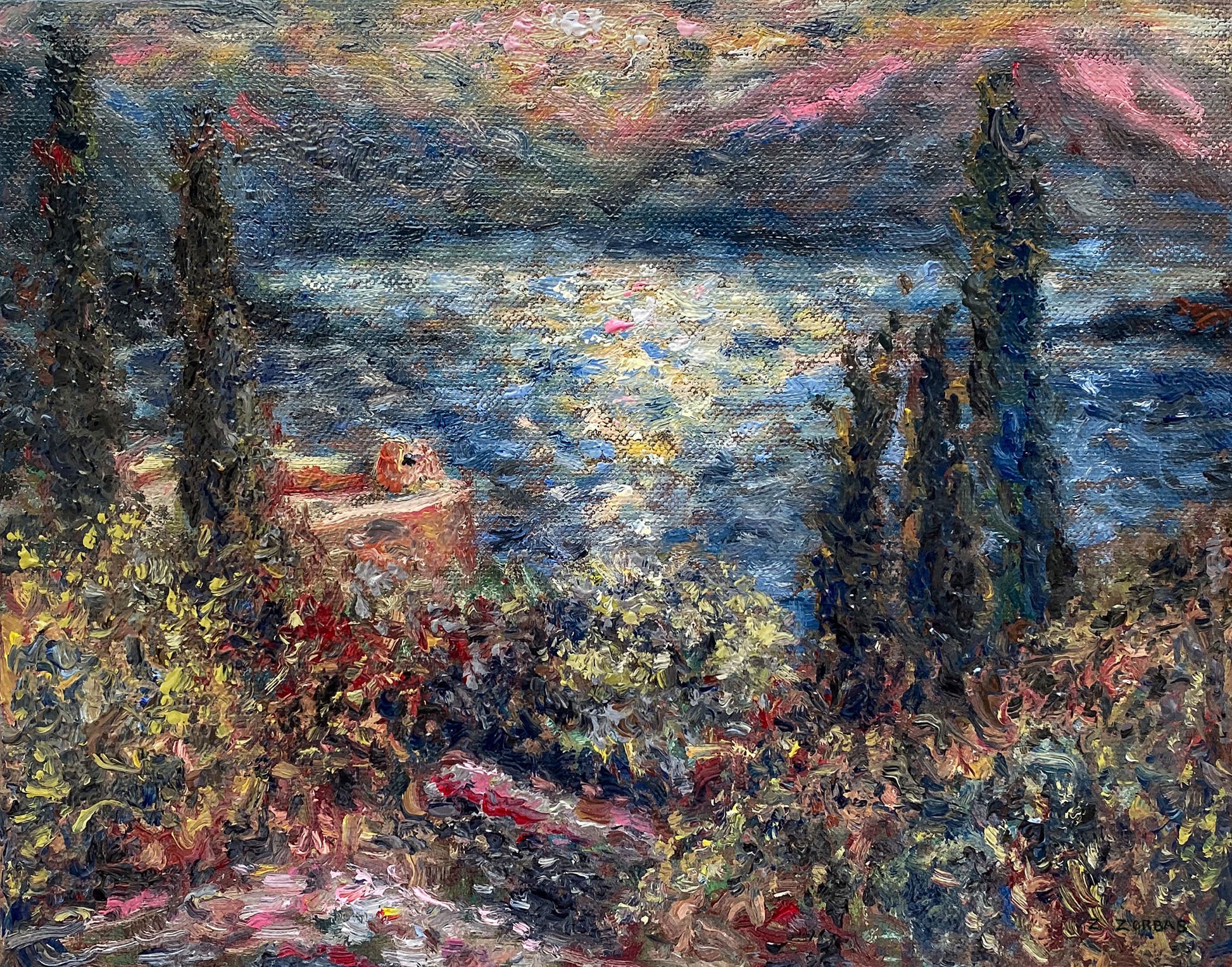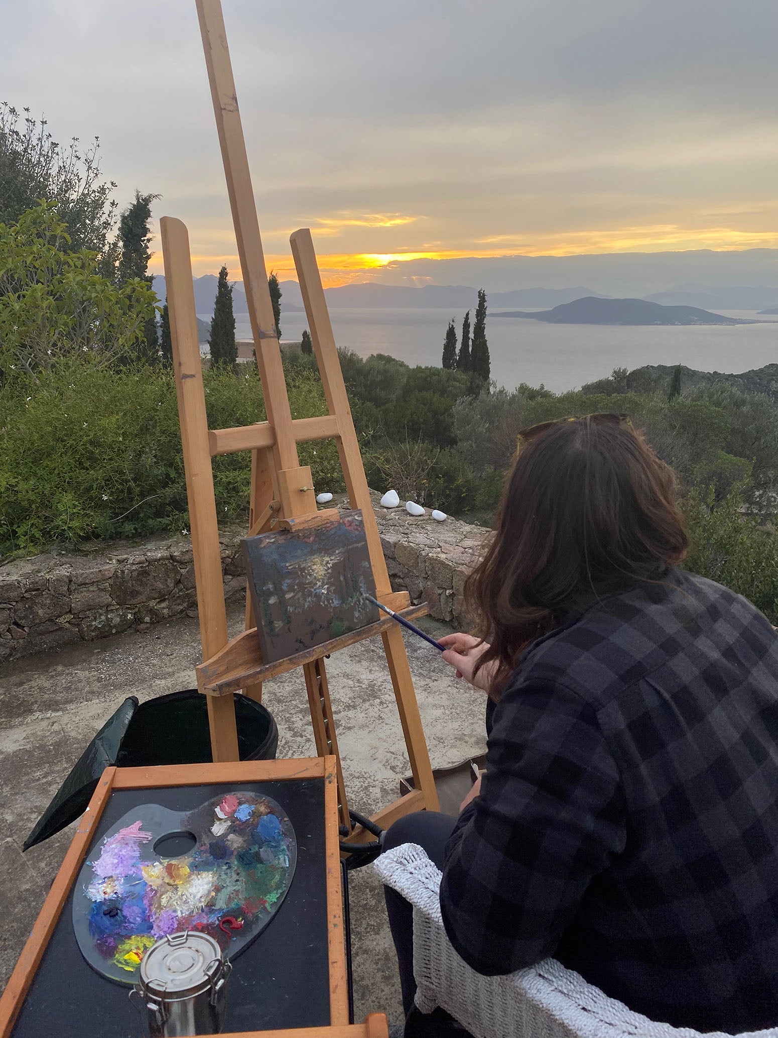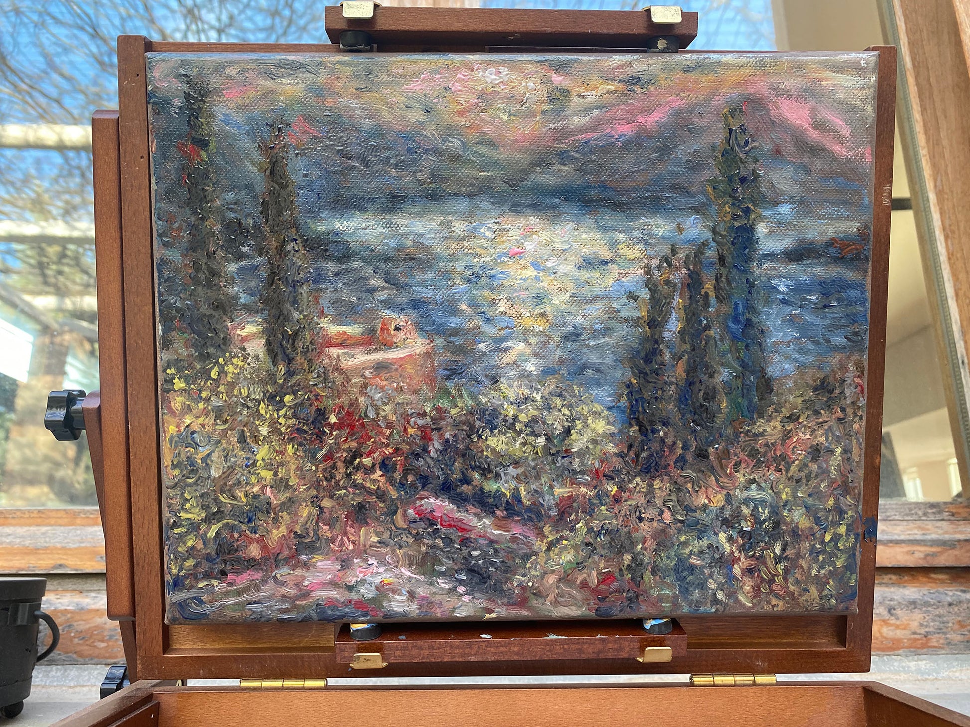 - Πρωτότυπος πίνακας του Ζαχαρία Ζορμπά με τίτλο "Θέα του Σαρωνικού Κόλπου από τους Τζίκηδες της Αίγινας", χειροποίητος στην Αίγινα