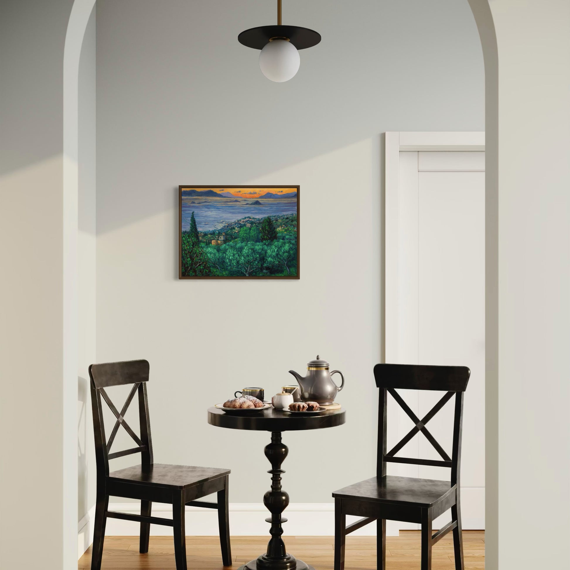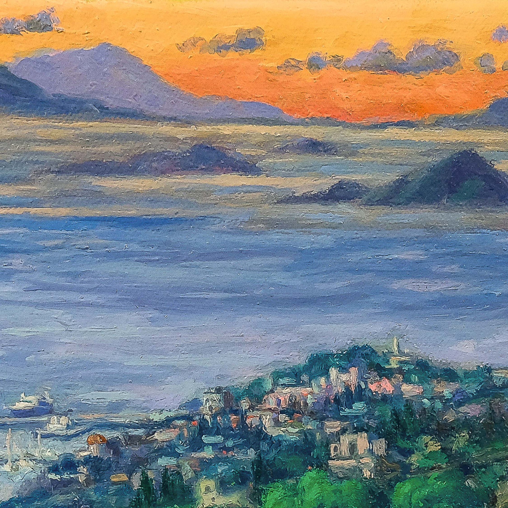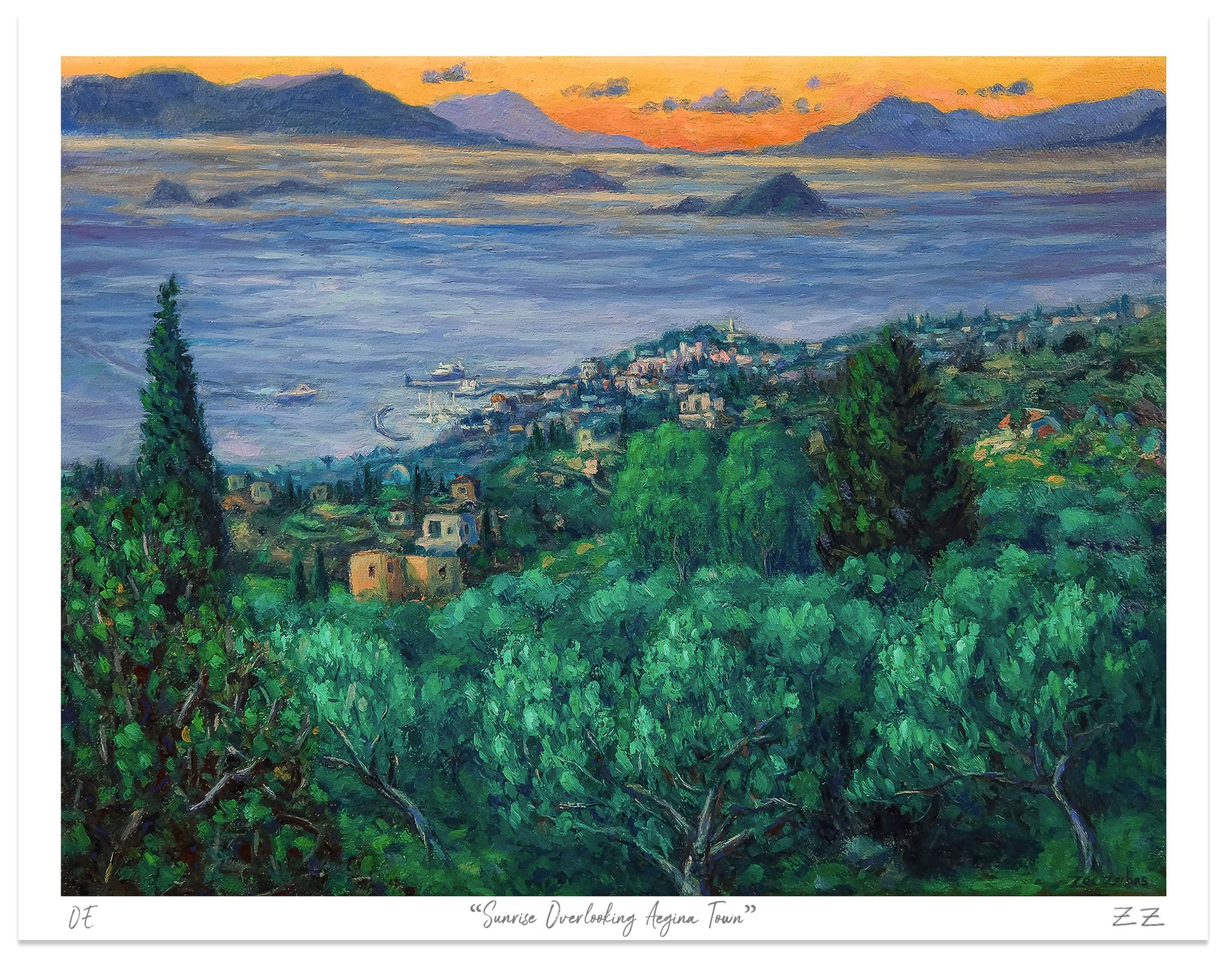 - Ανοιχτή εκτύπωση της πρωτότυπης ελαιογραφίας του Ζαχαρία Ζορμπά με τίτλο «Η Ανατολή του ηλίου με θέα την πόλη της Αίγινας»