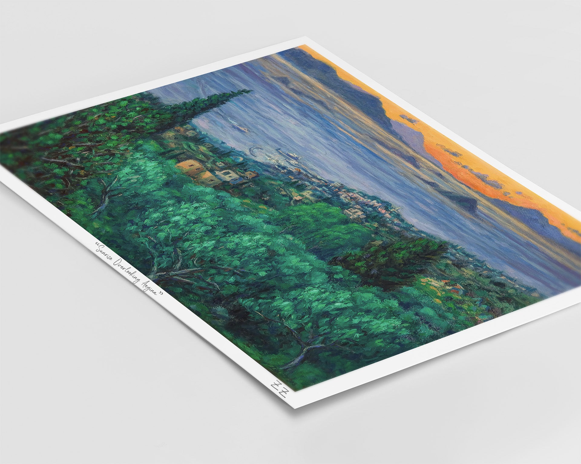 Εκτύπωση Τέχνης: Ανατολή με θέα την πόλη της Αίγινας