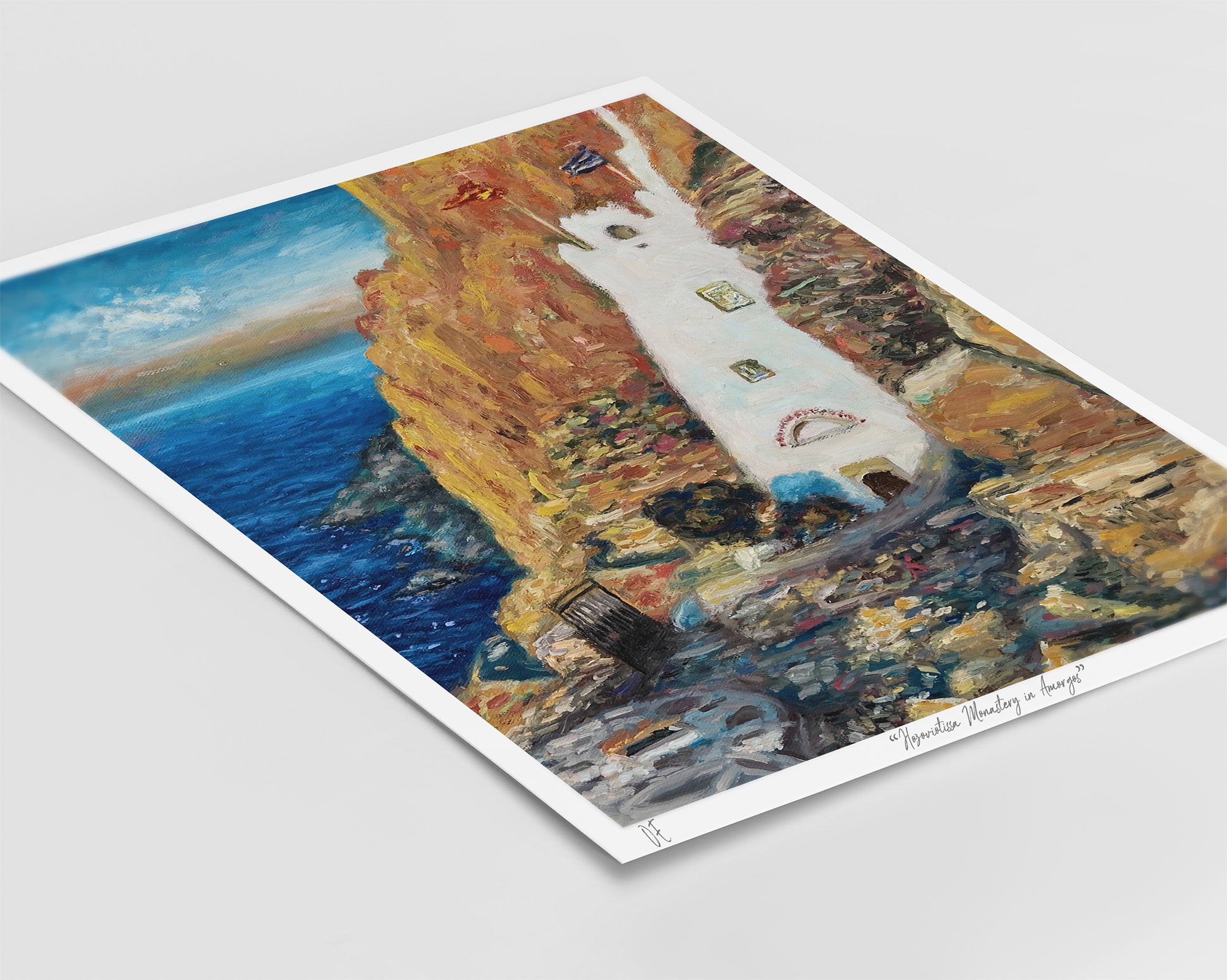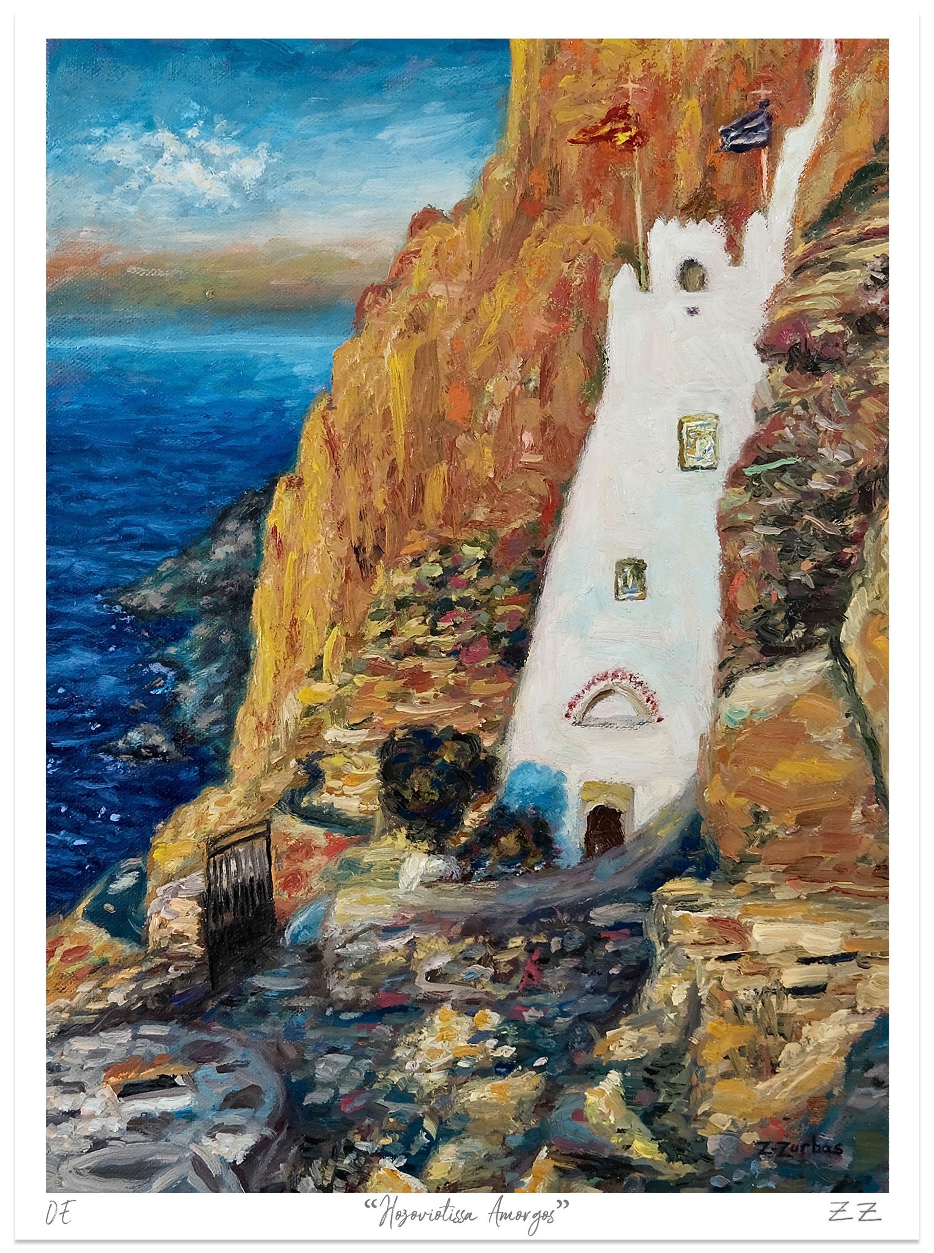 Εκτύπωση ανοιχτής έκδοσης της πρωτότυπης ελαιογραφίας του Ζαχαρίου Ζορμπά "Η Μονή Χοζοβιώτισσας κατά την Ανατολή του ηλίου, Αμοργός".