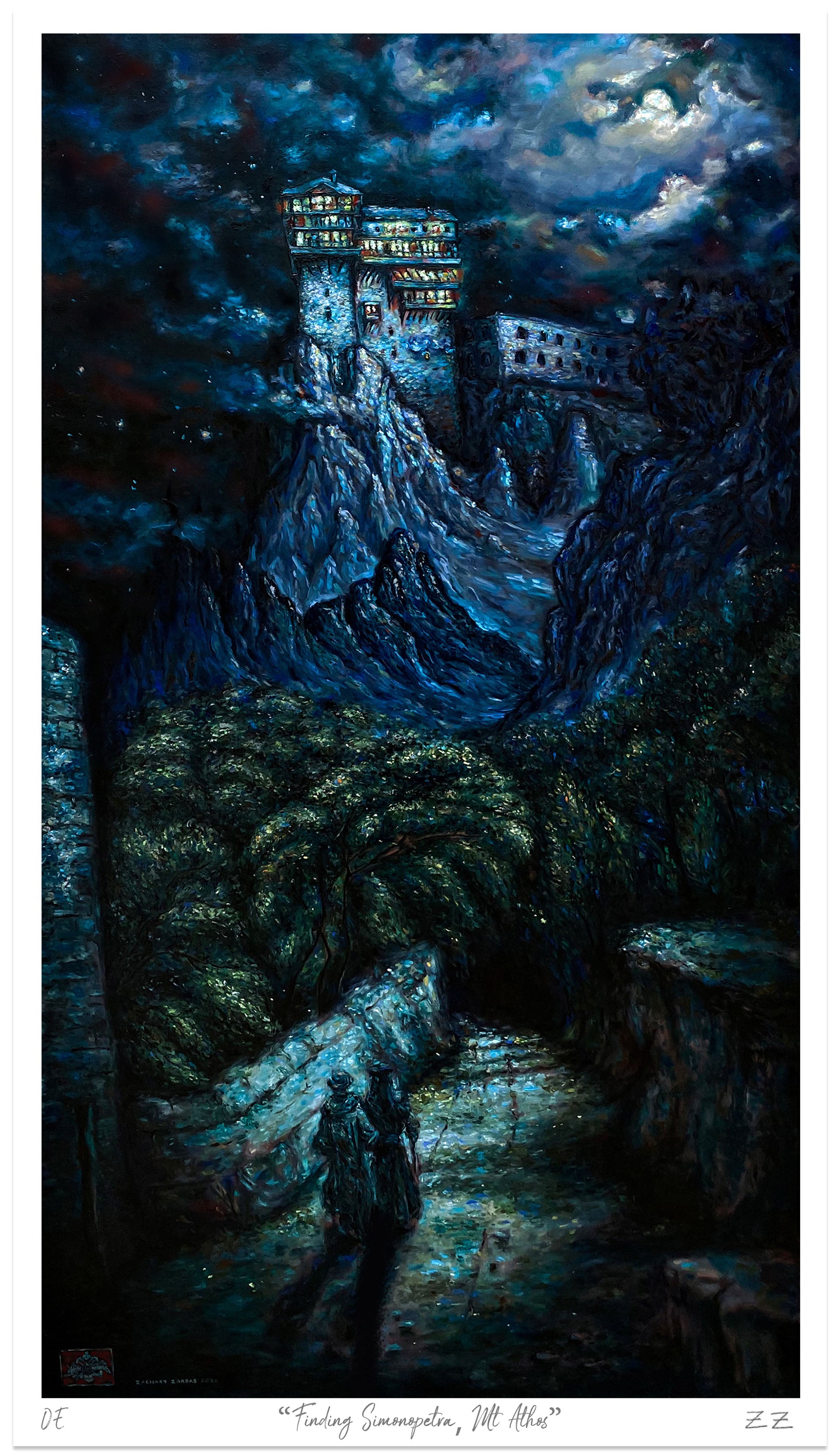 - Ανοιχτή εκτύπωση της πρωτότυπης ελαιογραφίας του Ζαχαρία Ζορμπά «Βρίσκοντας τη Μονή Σίμωνος Πέτρας στο Άγιο Όρος»