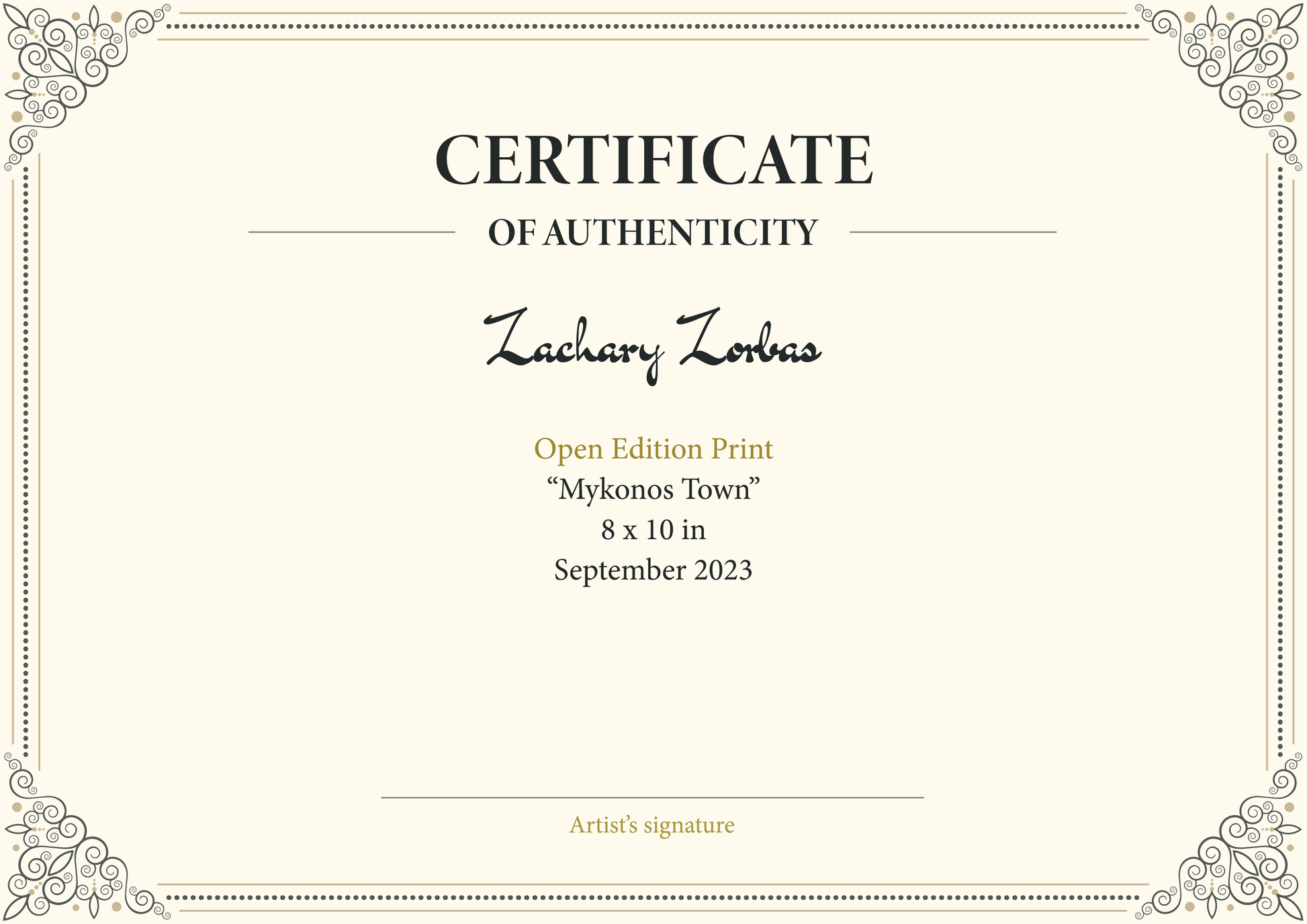 - Ανοιχτή εκτύπωση της πρωτότυπης ελαιογραφίας «Η πόλη της Μυκόνου» του Ζαχαρία Ζορμπά