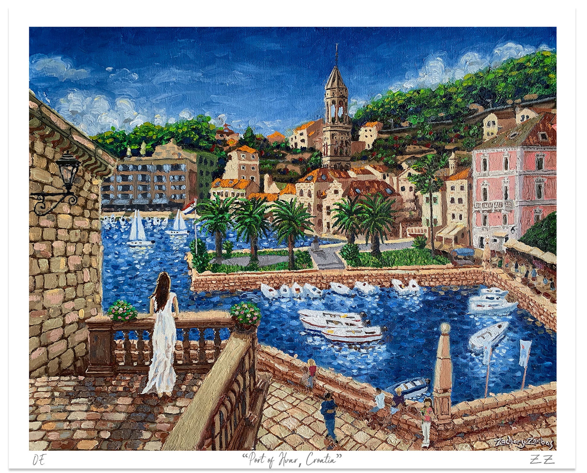 - Ανοιχτή εκτύπωση της πρωτότυπης ελαιογραφίας «Λιμάνι του Χβαρ, Κροατία» του Ζαχαρία Ζορμπά
