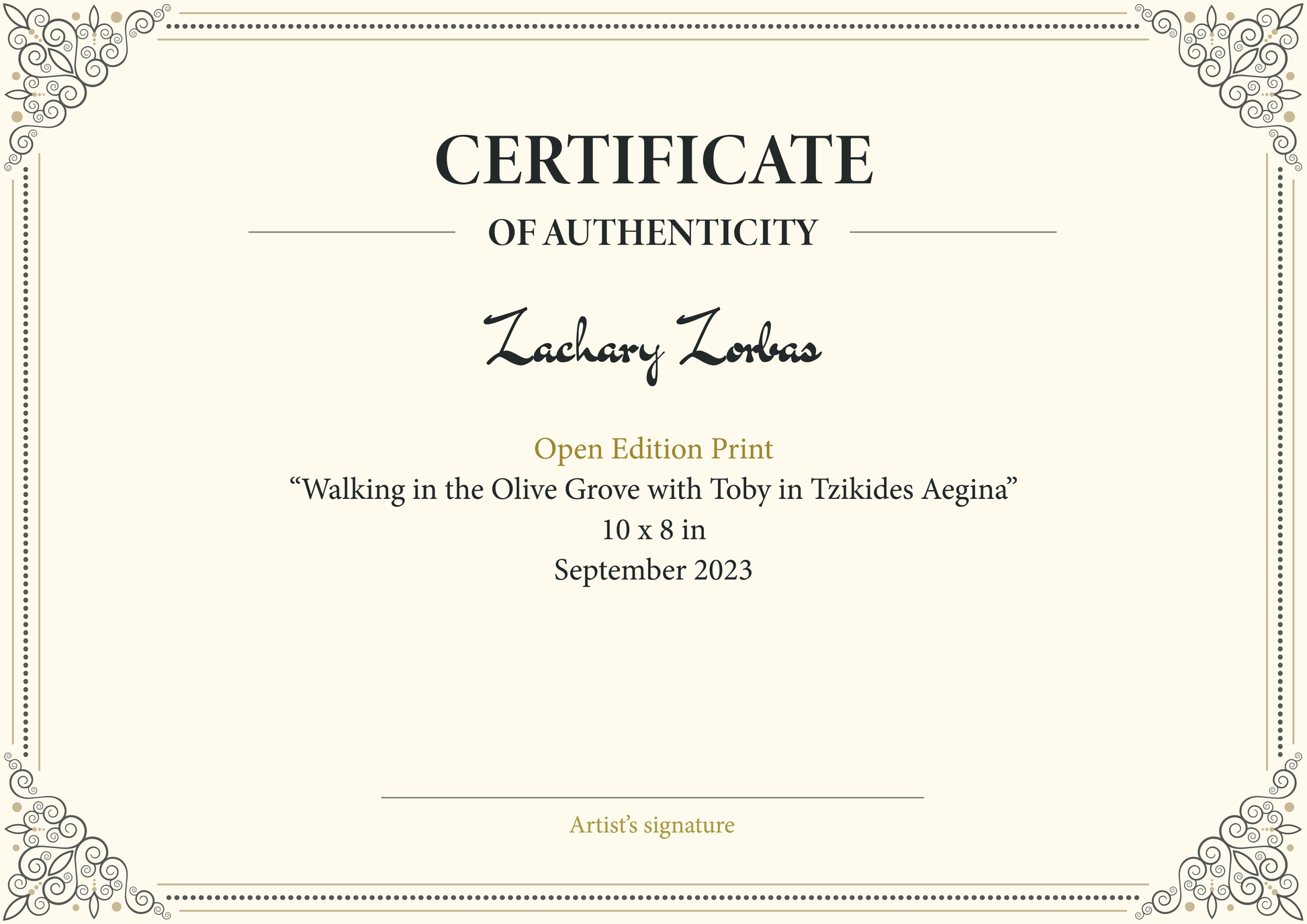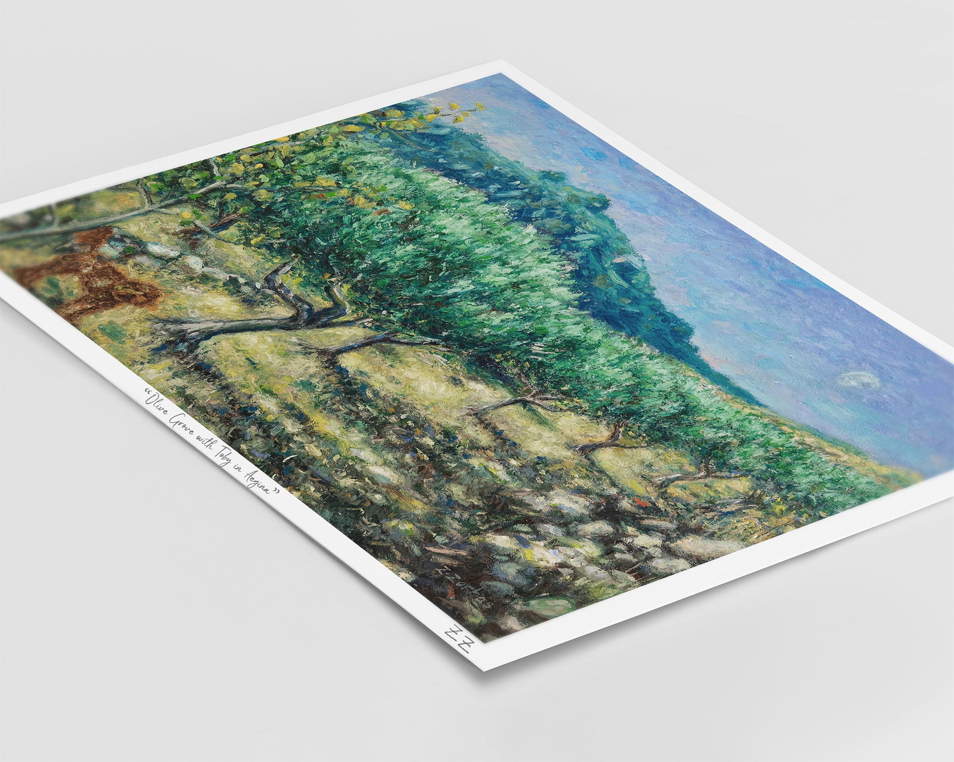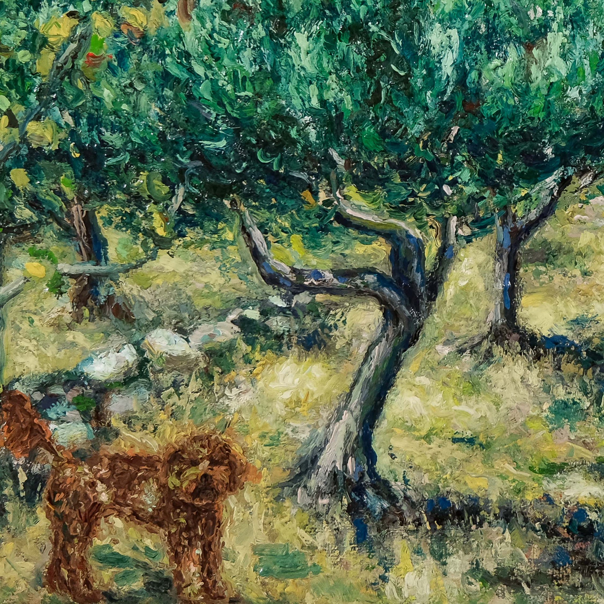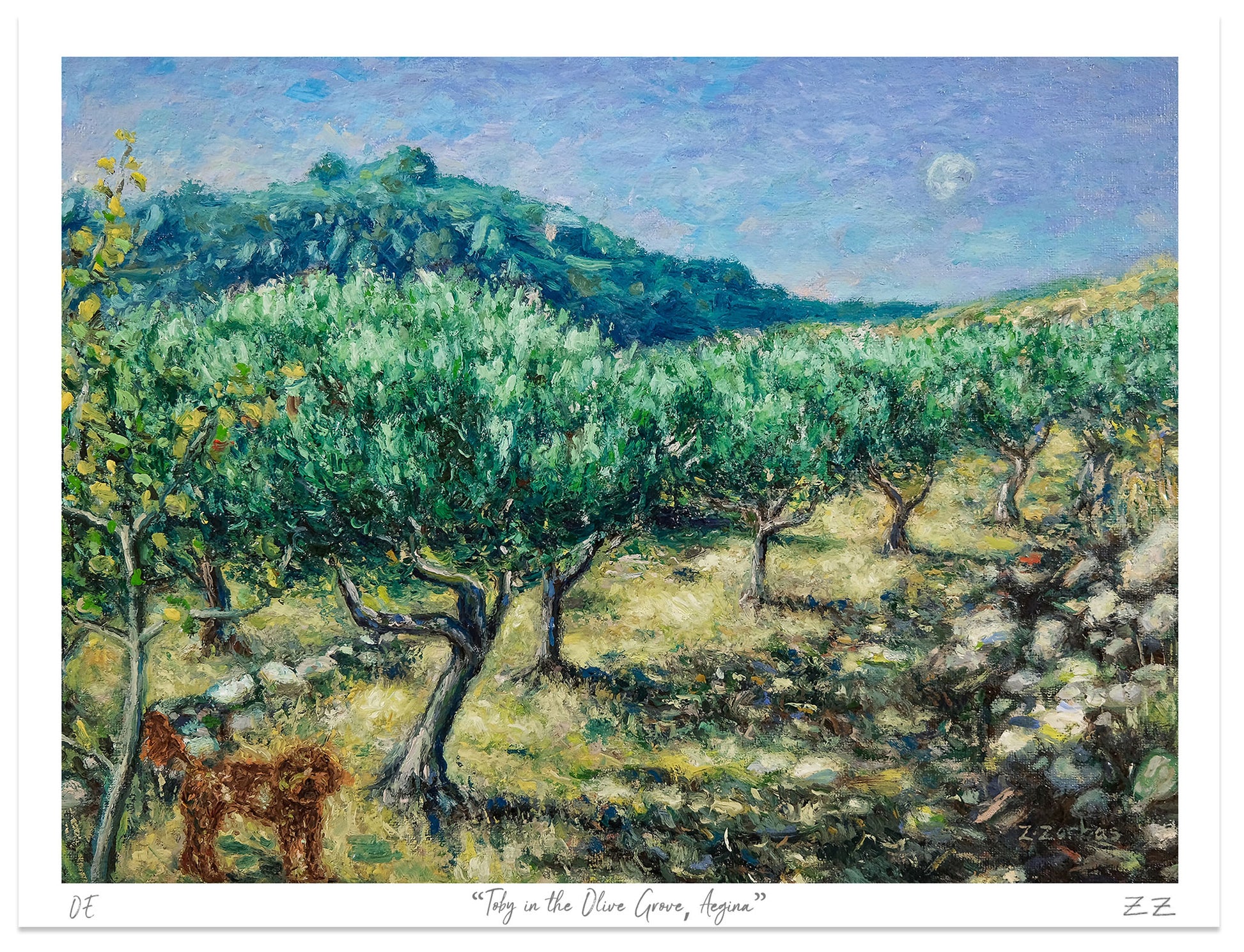 • Ανοιχτή εκτύπωση της πρωτότυπης ελαιογραφίας του Ζαχαρία Ζορμπά «Περπατώντας στον Ελαιώνα με τον Τόμπι»