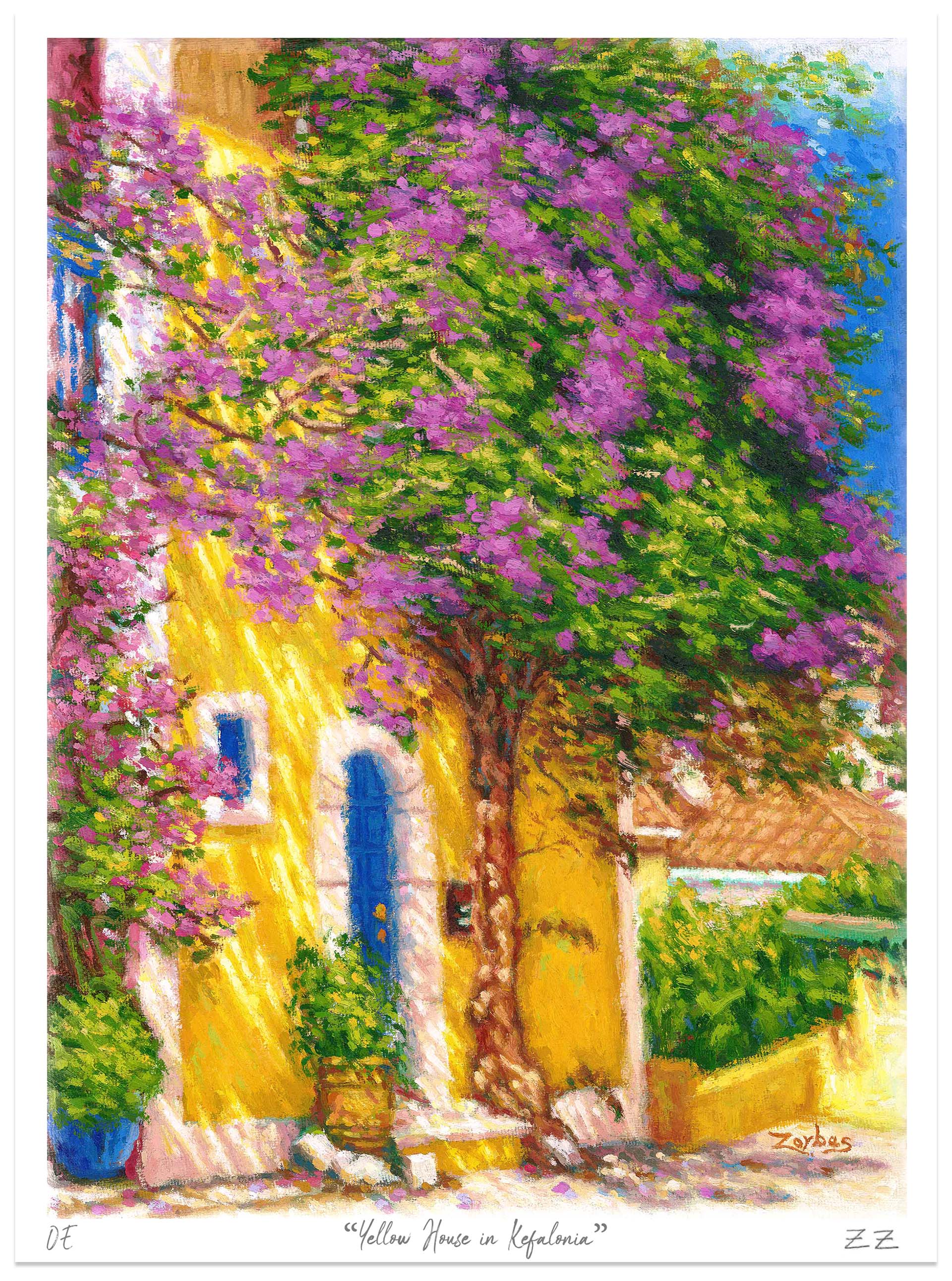 - Ανοιχτή εκτύπωση της πρωτότυπης ελαιογραφίας του Ζαχαρία Ζορμπά «Κίτρινο Σπίτι στην Κεφαλονιά»