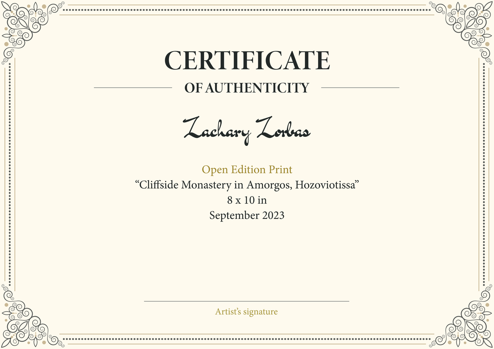- Περιλαμβάνει Πιστοποιητικό Αυθεντικότητας Καλλιτέχνη