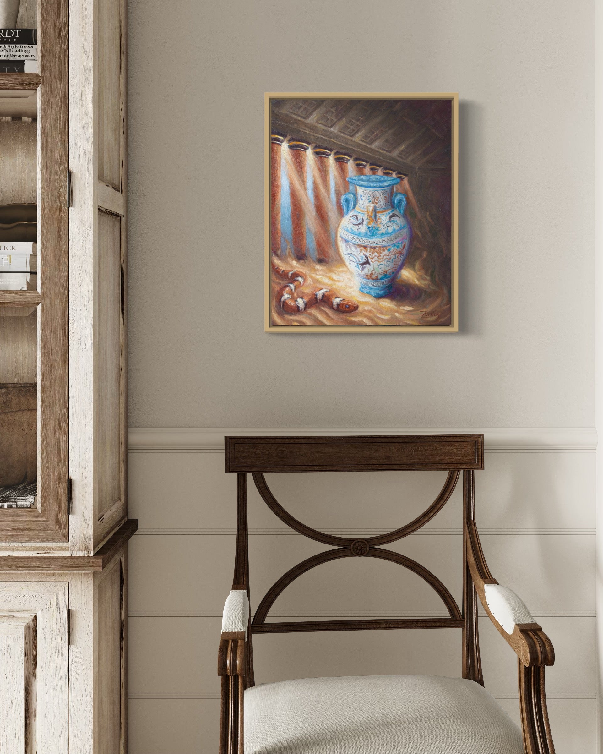 • Εικόνα τυπωμένη από εκτυπωτή inkjet σε καμβά της πρωτότυπης ελαιογραφίας του Ζαχαρία Ζορμπά με τίτλο «Μινωικός Αμφορέας στον Ναό της Κνωσού στην Κρήτη».
