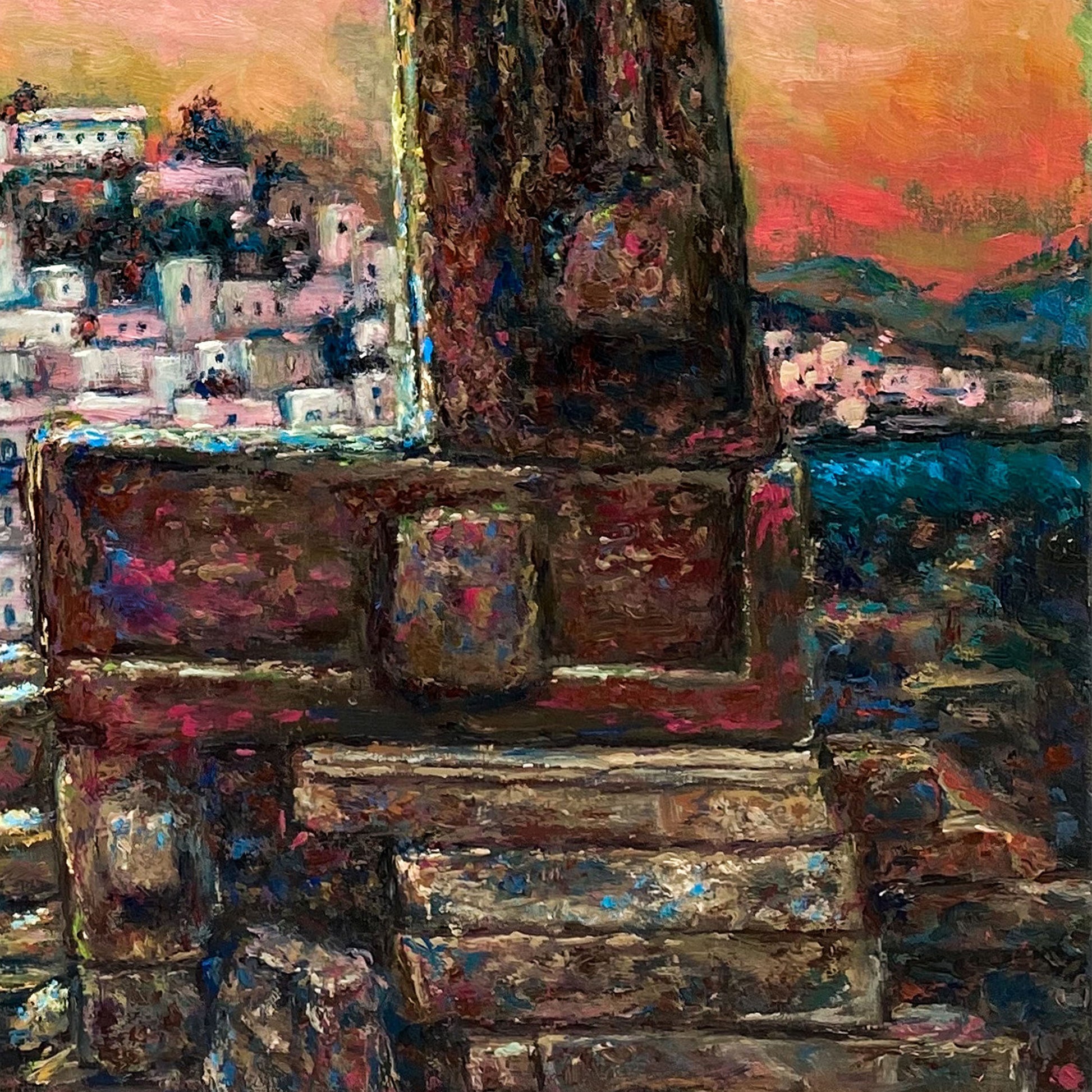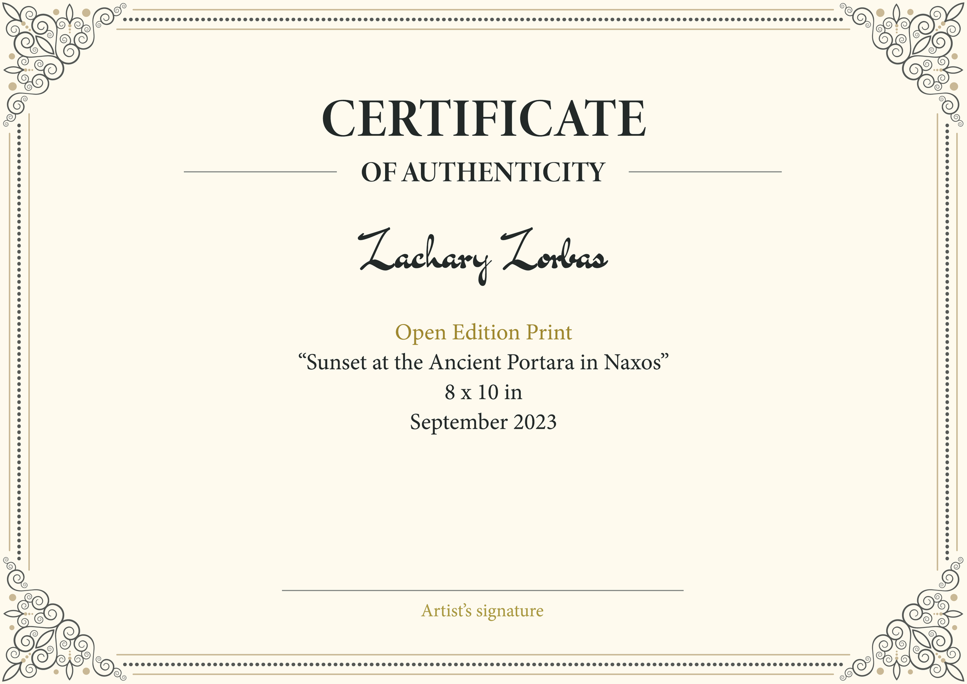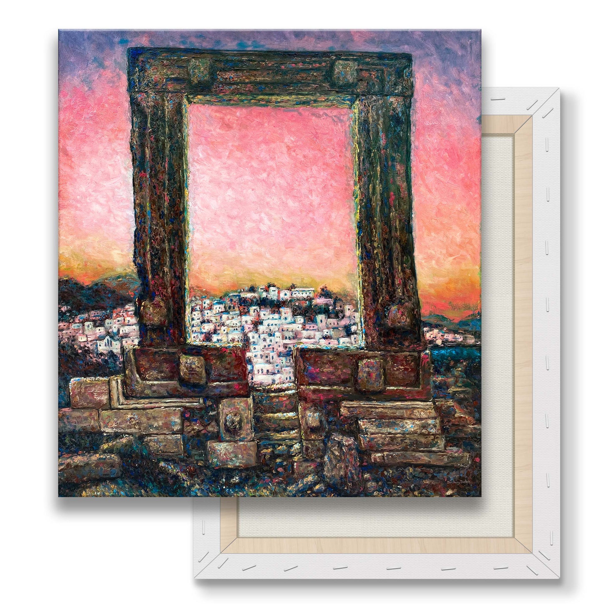 - Εικόνα τυπωμένη από εκτυπωτή inkjet σε καμβά της πρωτότυπης ελαιογραφίας "Naxos Portara" του Ζαχαρία Ζορμπά