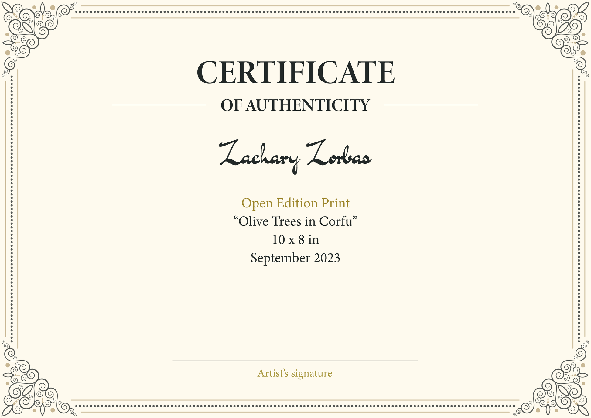 - Περιλαμβάνει Πιστοποιητικό Αυθεντικότητας Καλλιτέχνη