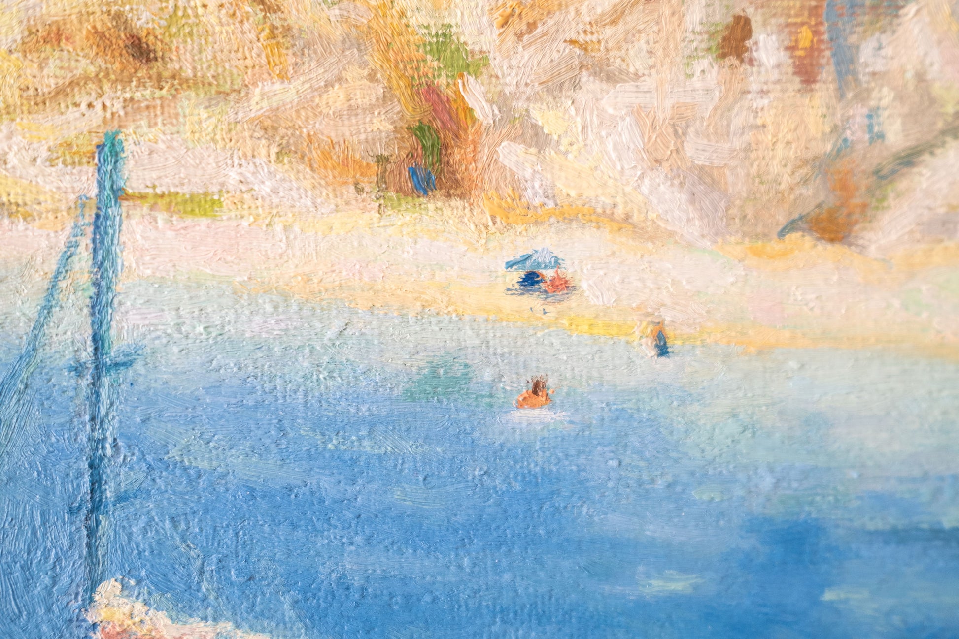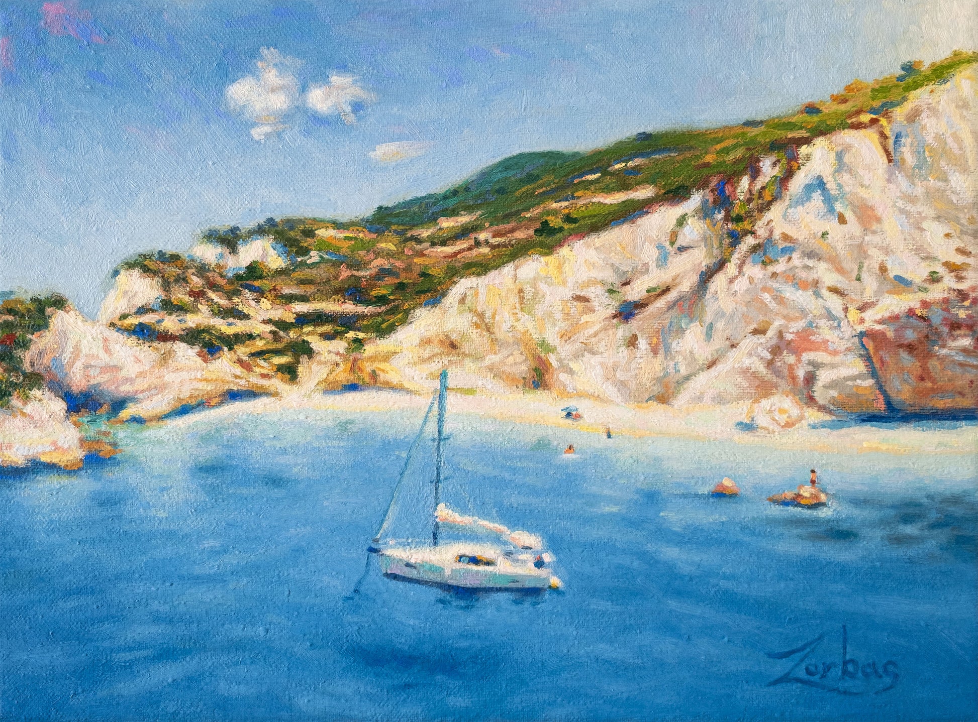 - Εικόνα τυπωμένη από εκτυπωτή inkjet σε καμβά της πρωτότυπης ελαιογραφίας του Ζαχαρία Ζορμπά «Ιστορία στη Λευκάδα, Πόρτο Κατσίκι»