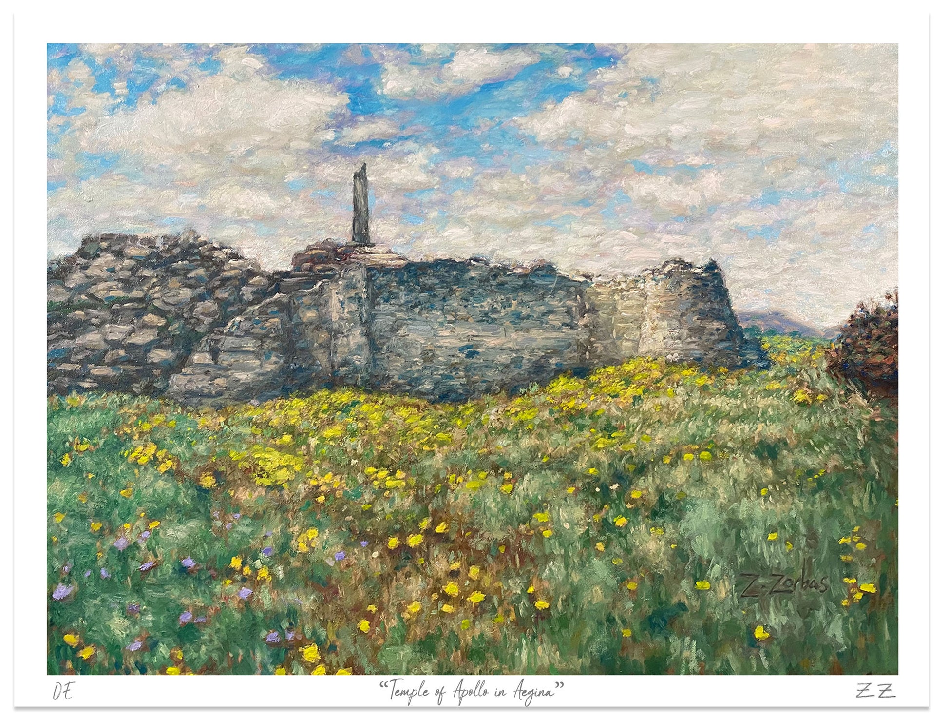 - Ανοιχτή εκτύπωση της πρωτότυπης ελαιογραφίας του Ζαχαρία Ζορμπά με τίτλο «Ναός του Απόλλωνα την Άνοιξη, Αίγινα»