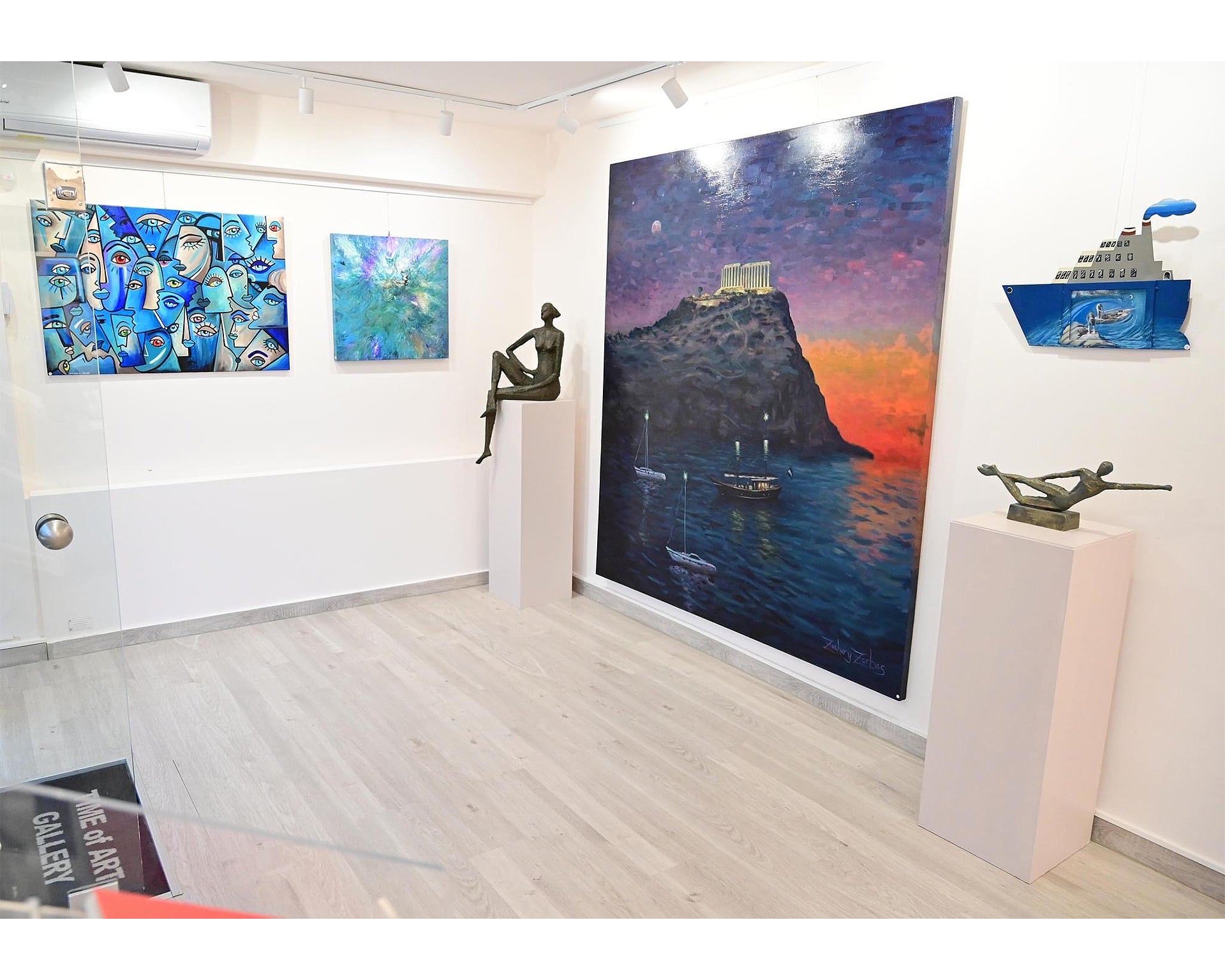• Πρωτότυπος πίνακας του Ζαχαρία Ζορμπά με τίτλο «Σούνιο, Ναός του Ποσειδώνα» χειροποίητος στην Αίγινα