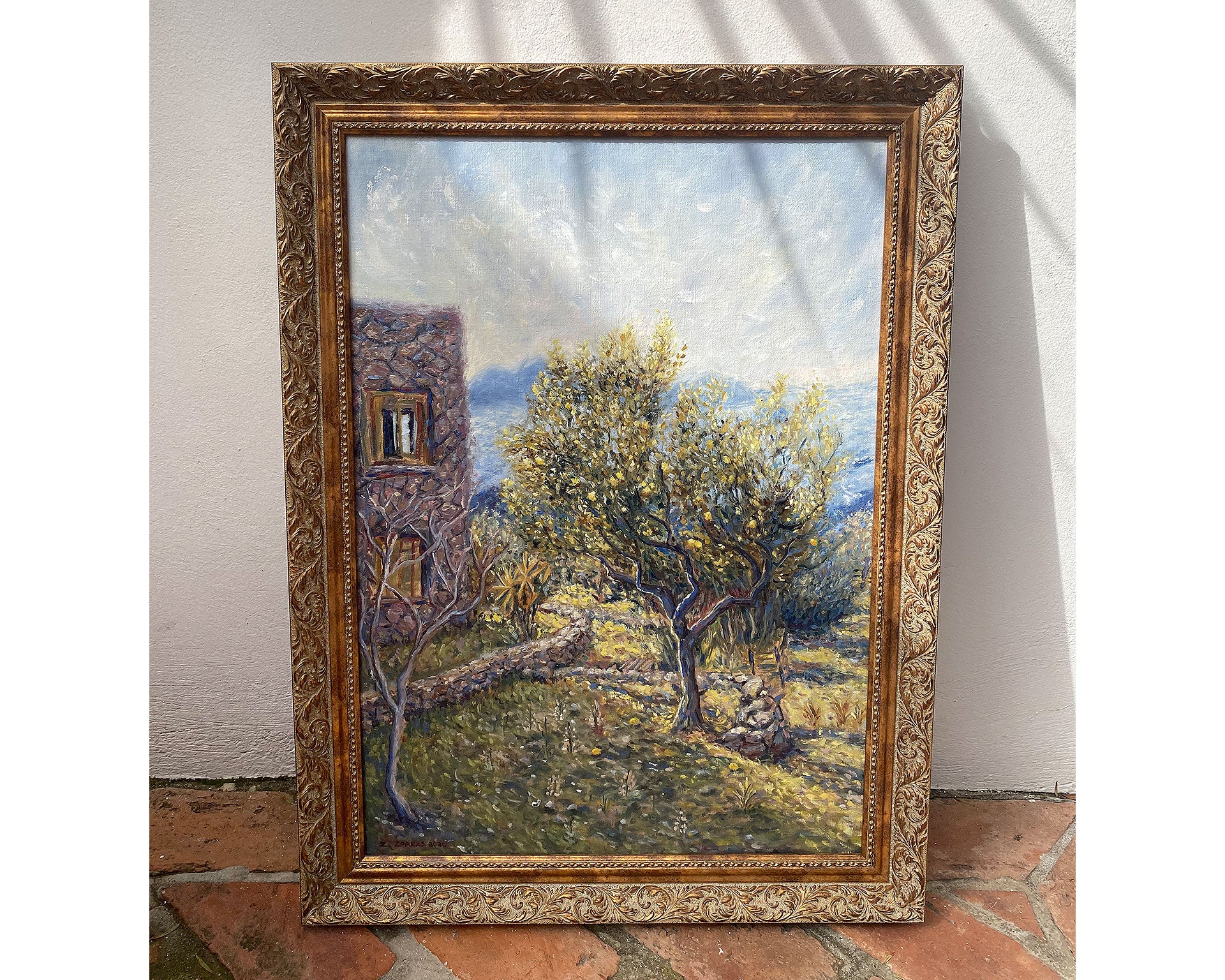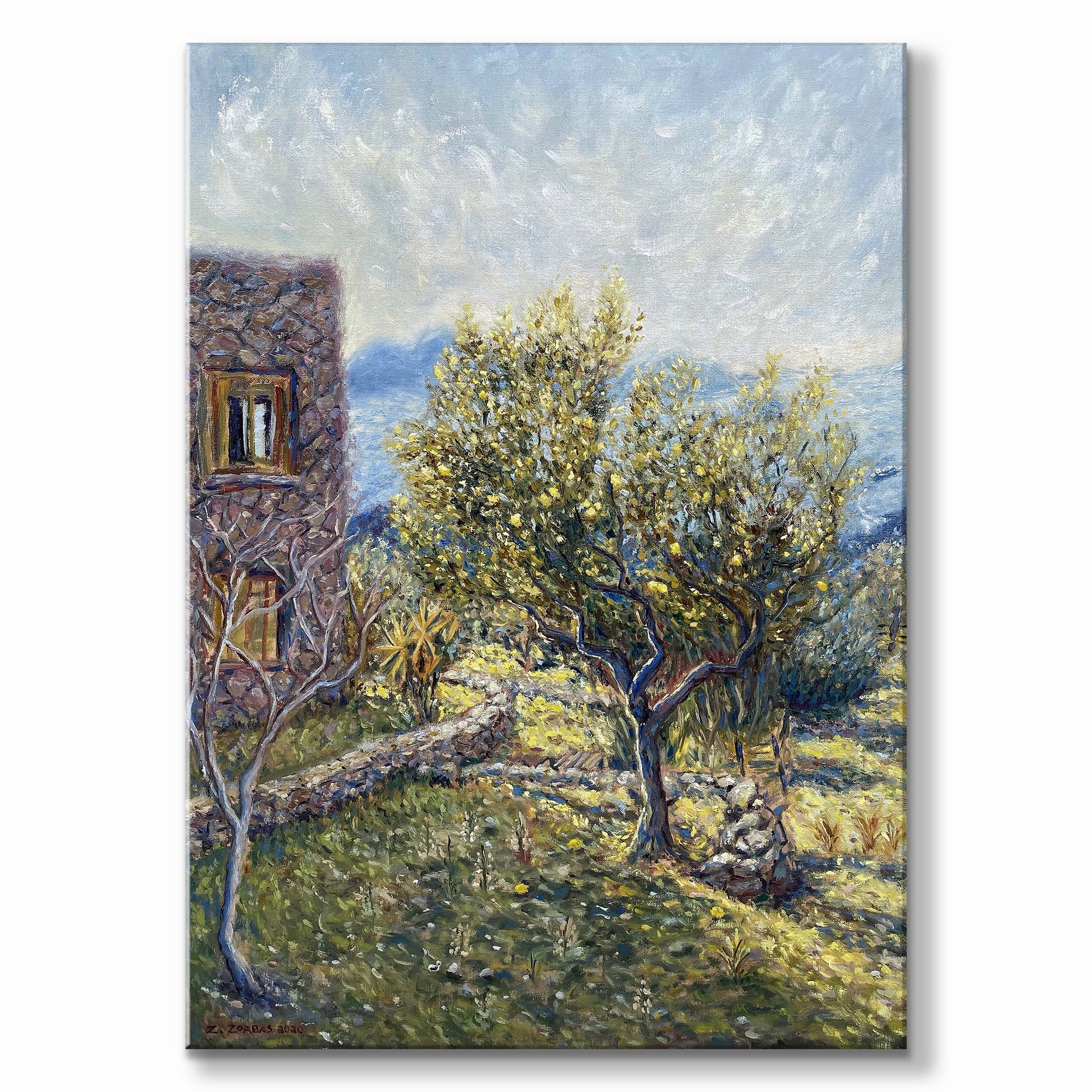 - Πρωτότυπος πίνακας του Ζαχαρία Ζορμπά με τίτλο "Λεμονιά στο σπίτι στην Αίγινα" χειροποίητος στην Αθήνα, Ελλάδα