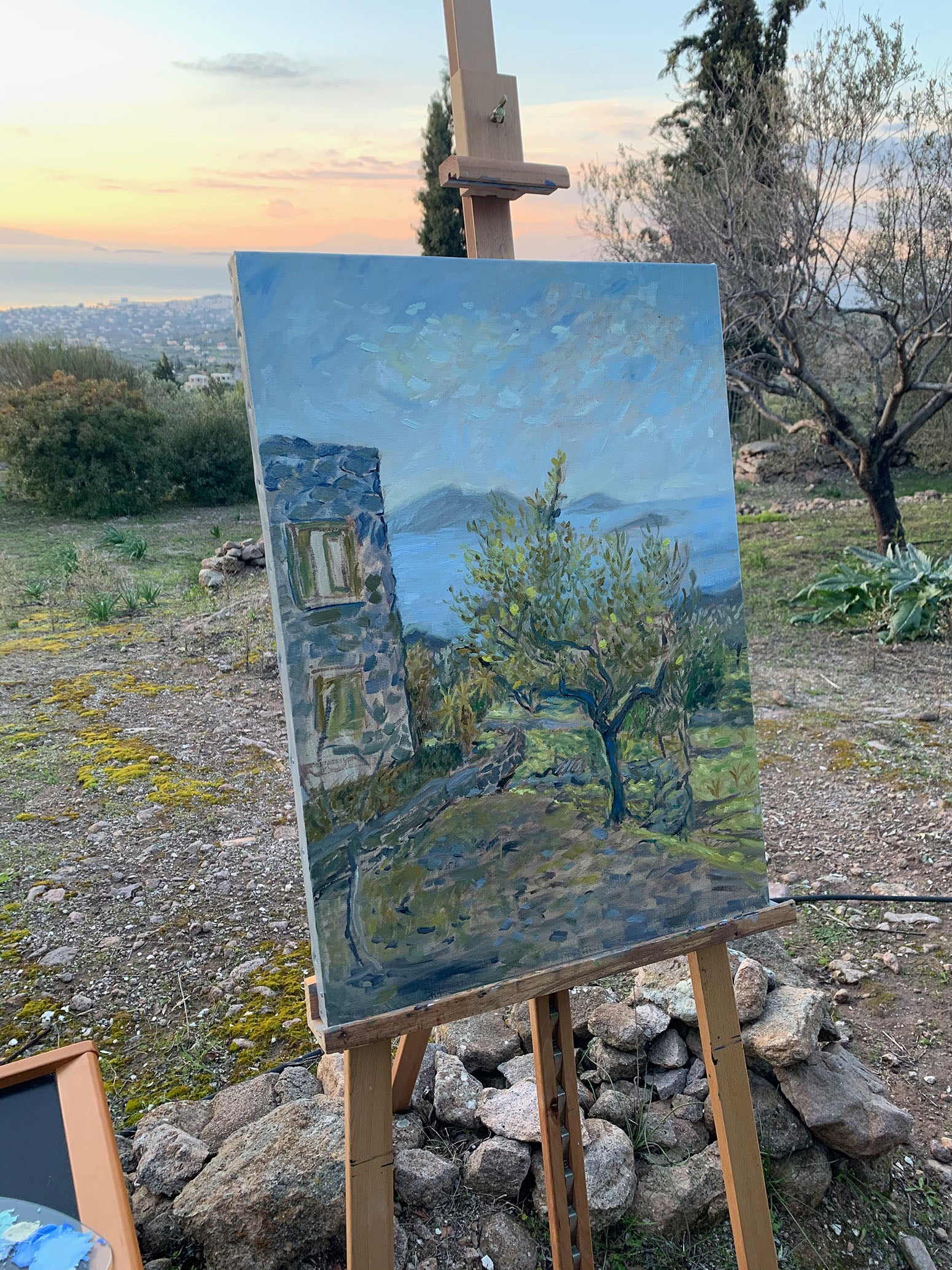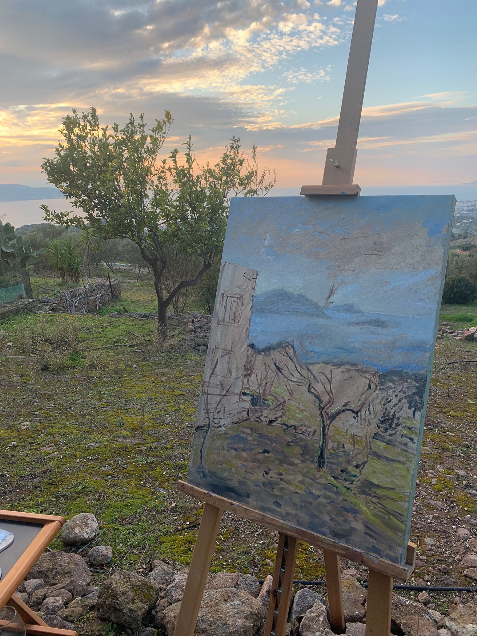 Μόλις είχαμε μετακομίσει σε ένα ενοικιαζόμενο σπίτι στο νησί της Αίγινας. Είναι το μεγαλύτερο σπίτι που έχουμε ζήσει και έχει έναν απίστευτο κήπο. Βρίσκεται σε ένα βουνό και ήταν μέσα στον χειμώνα. Πέρασα περίπου μία ώρα ψάχνοντας κάτι να βάψω έξω όταν είδα αυτή τη θέα μιας από τις λεμονιές στην αυλή μας.
