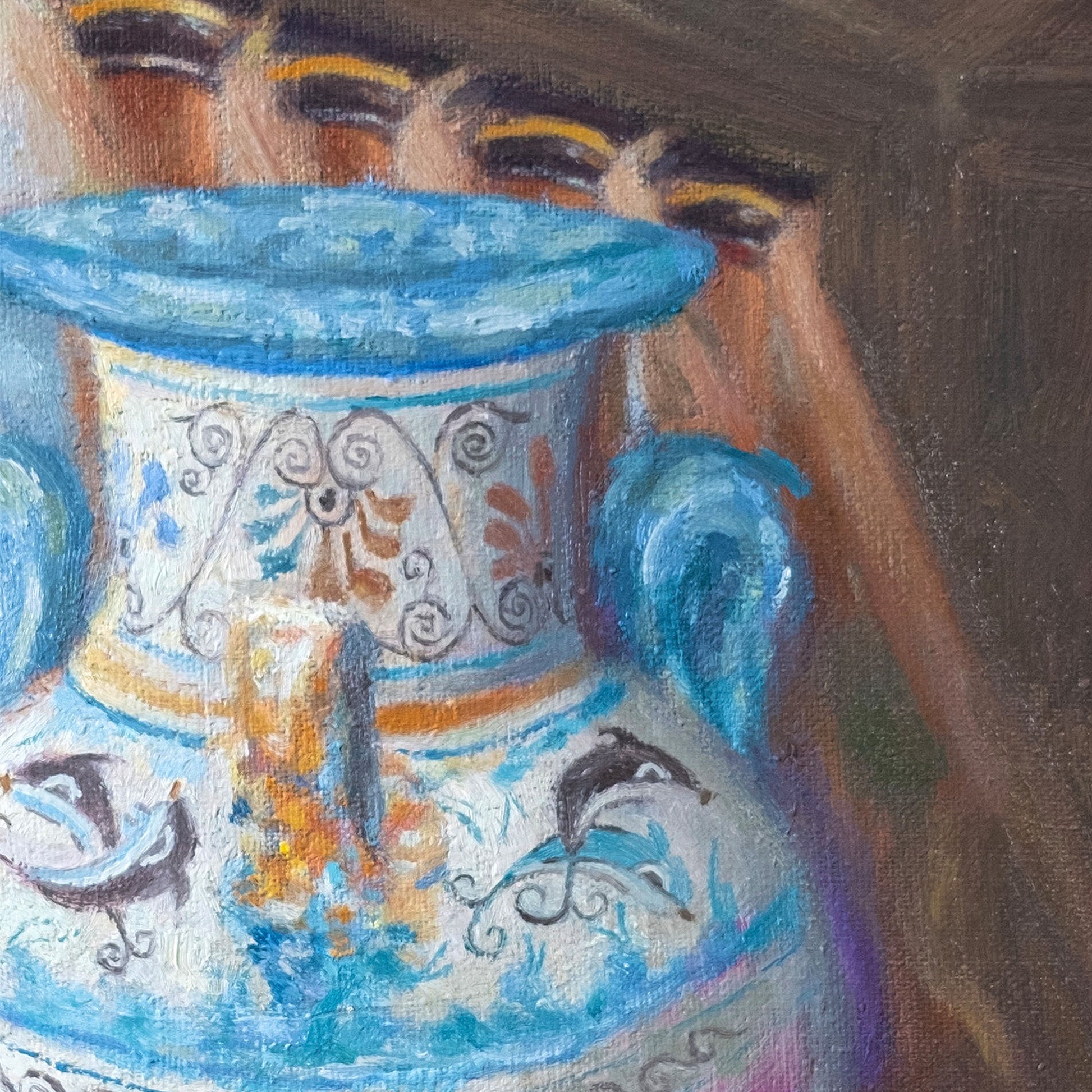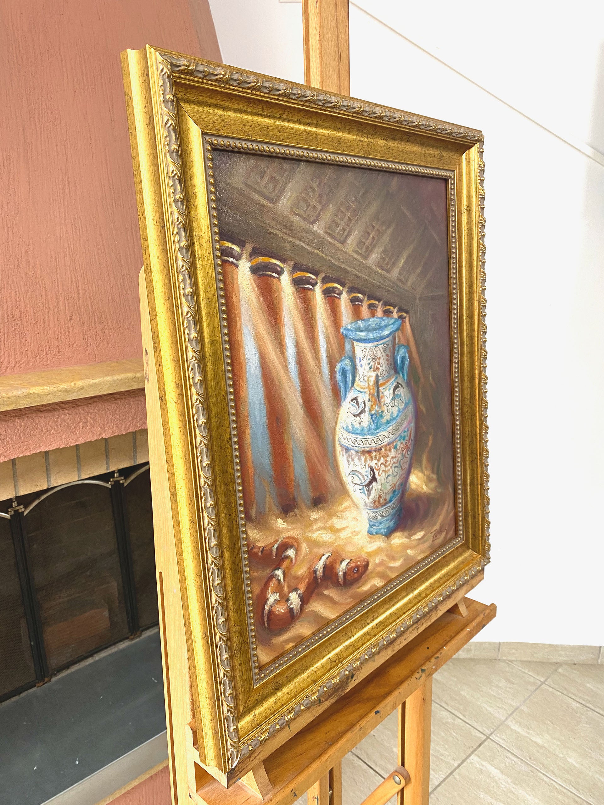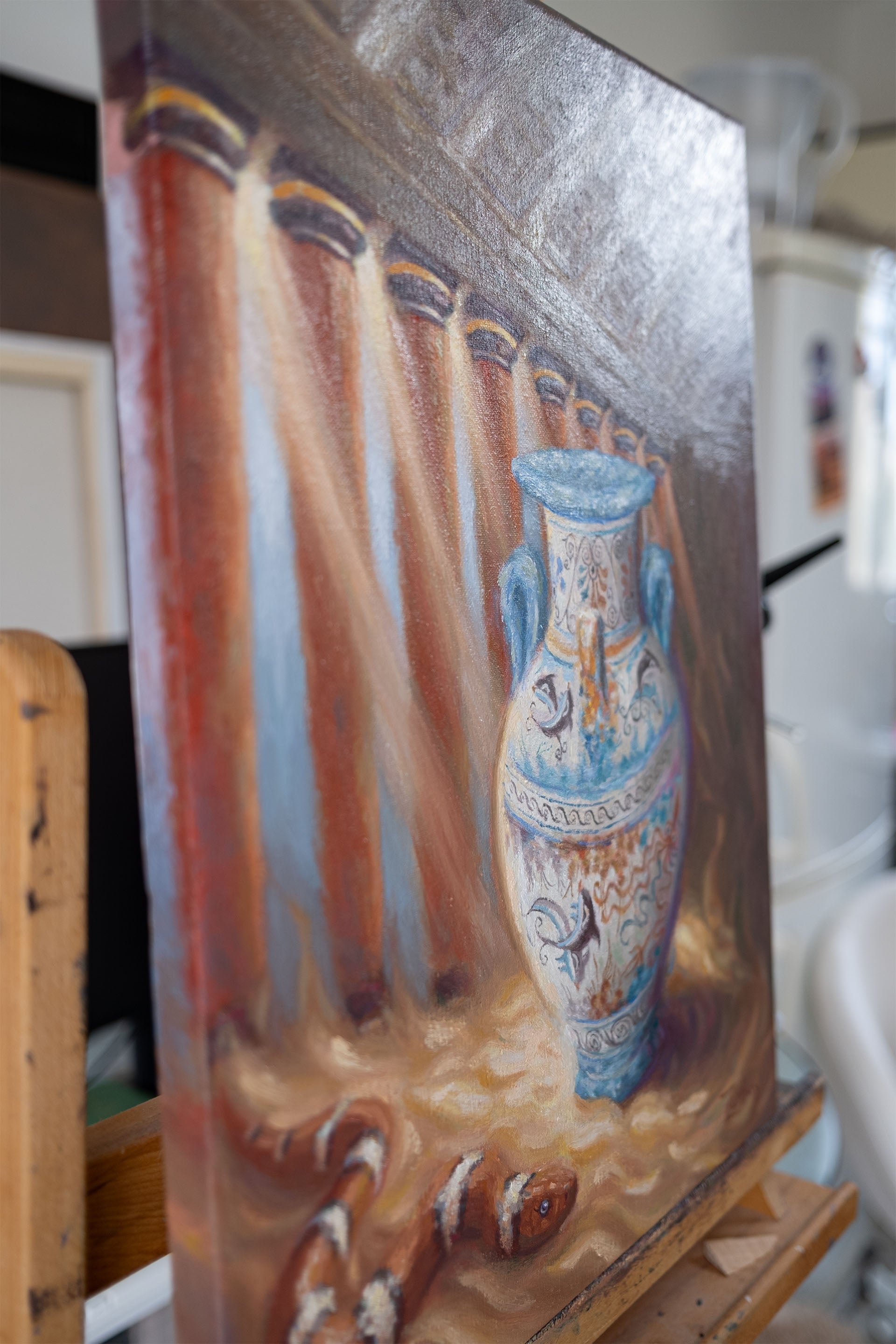- Πρωτότυπος πίνακας του Ζαχαρία Ζορμπά με τίτλο "Μινωικός Αμφορέας στον Ναό της Κνωσού, Κρήτη", χειροποίητος στην Αίγινα, Ελλάδα
