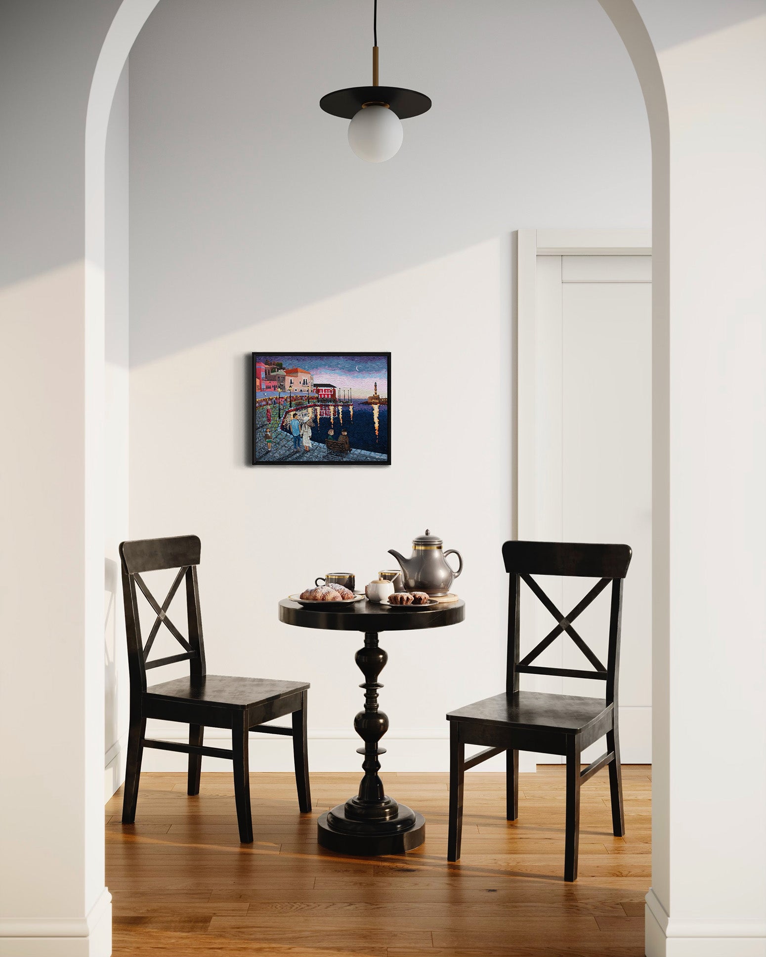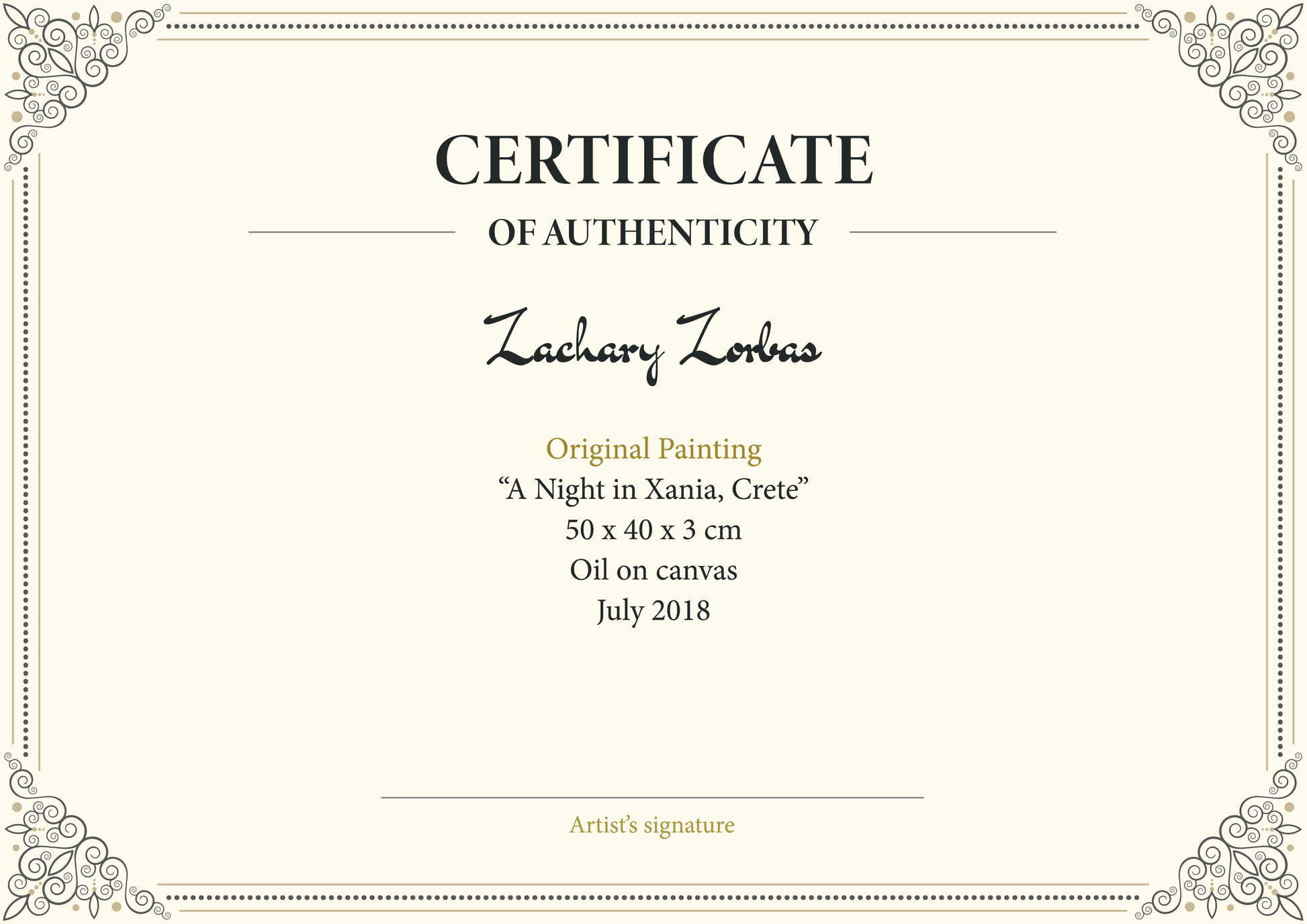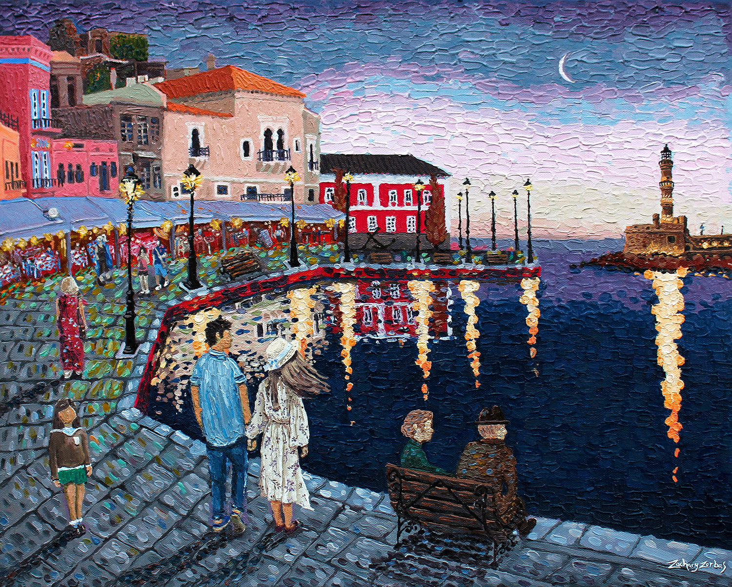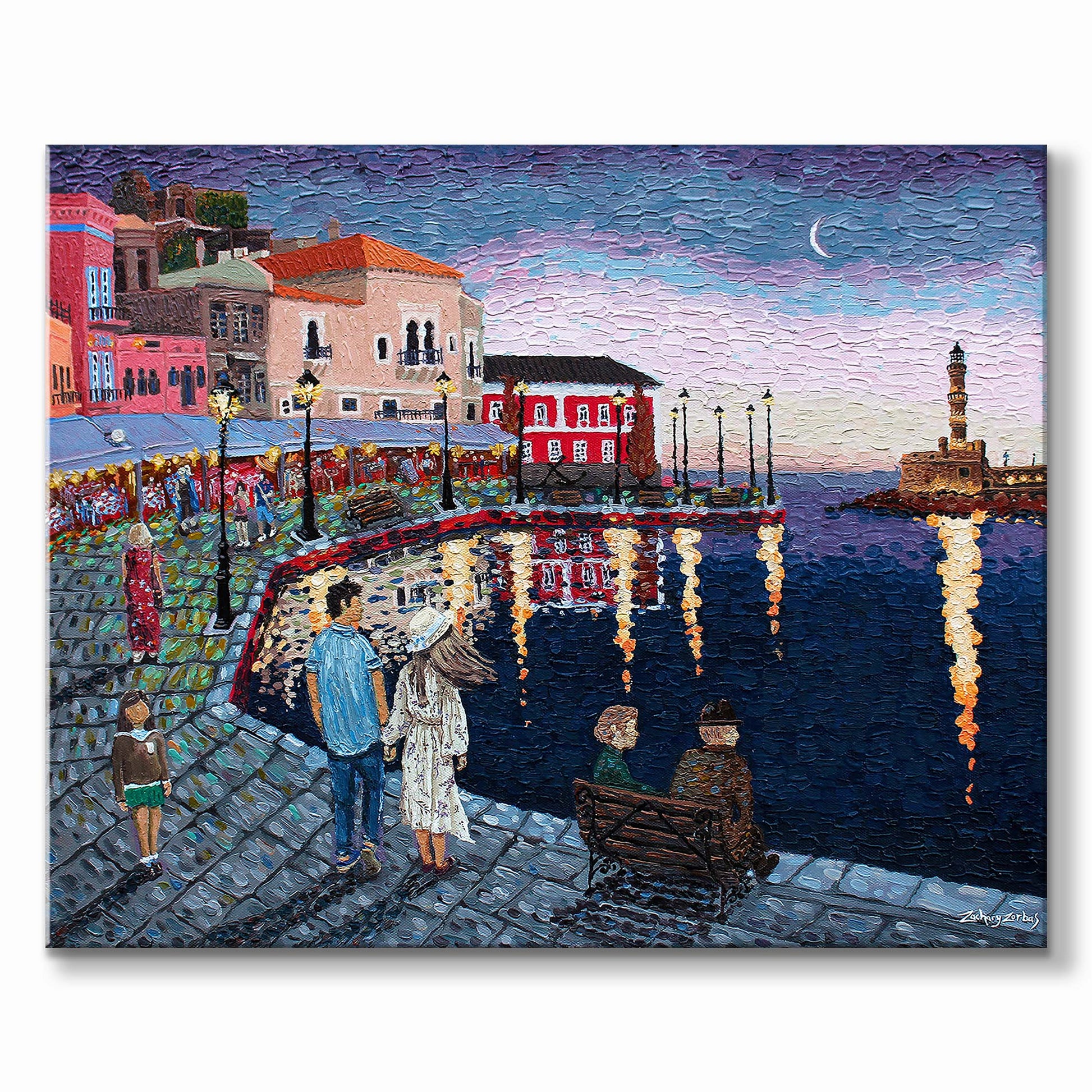 - Original painting by Zachary Zorbas titled "A Night in Chania, Crete" handmade in Crete and Athens, Greece