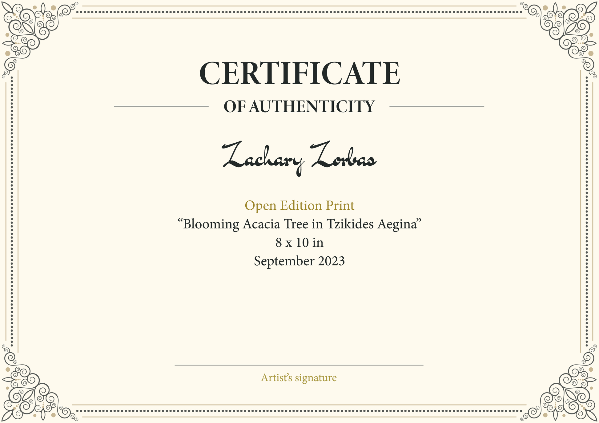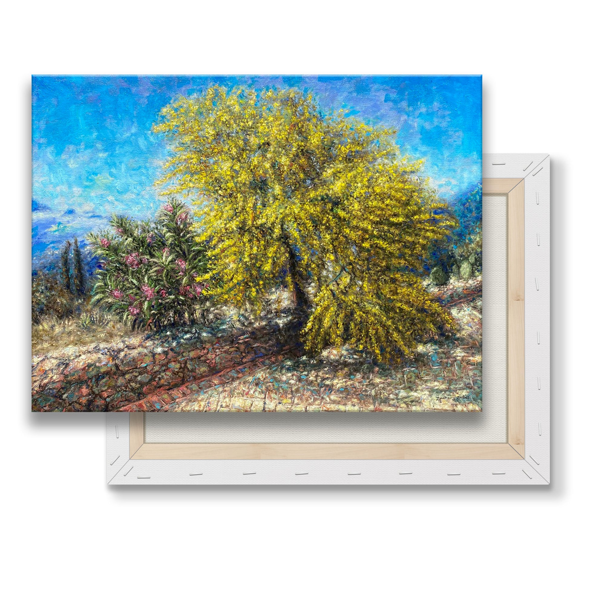 - Image printed from an inkjet printer onto canvas of Zachary Zorbas' original "Acacia Tree in Bloom" oil painting