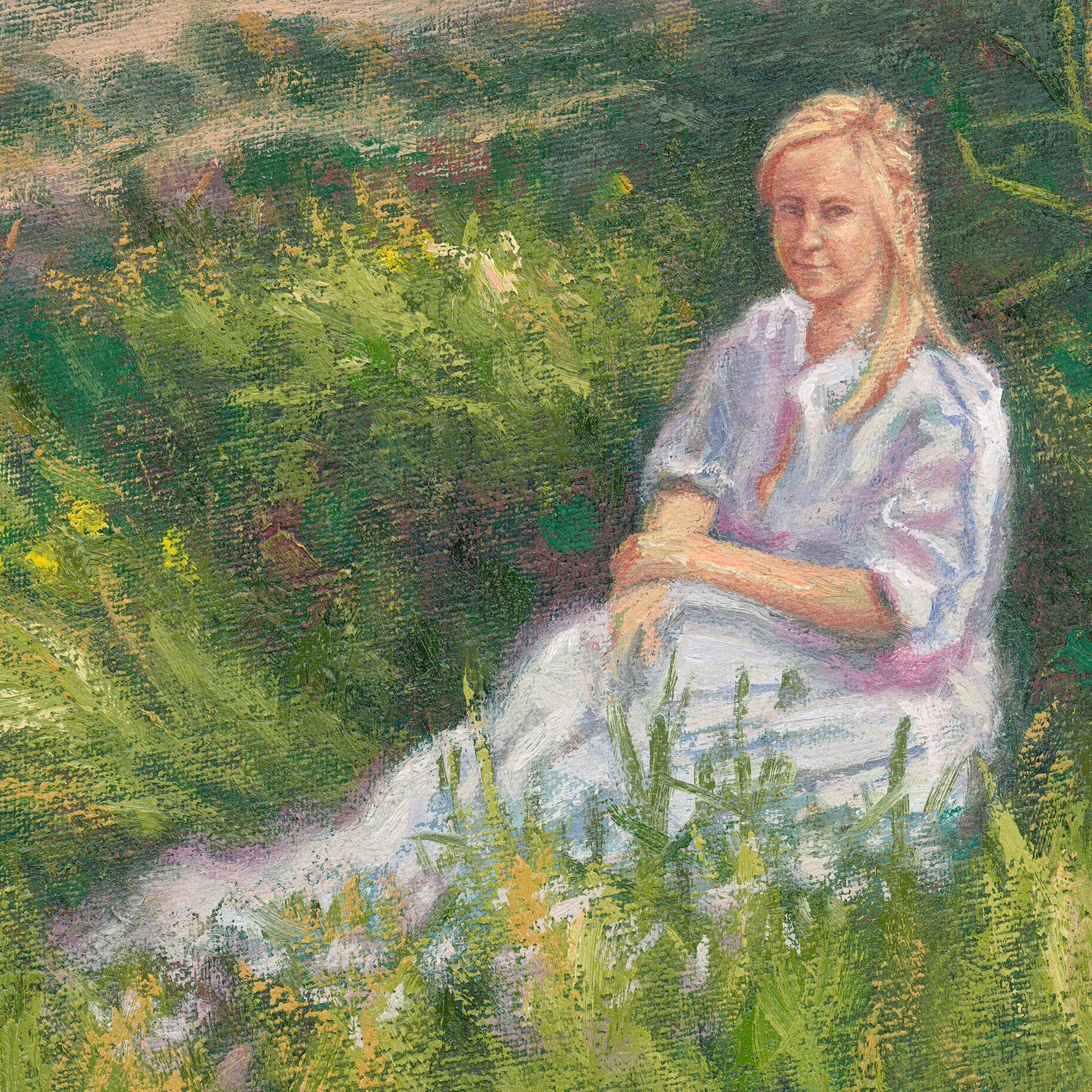 I wanted to spend time painting outside with nature instead of being locked up in the studio. It was a good chance to paint my wife as she so graciously volunteered to model for me.