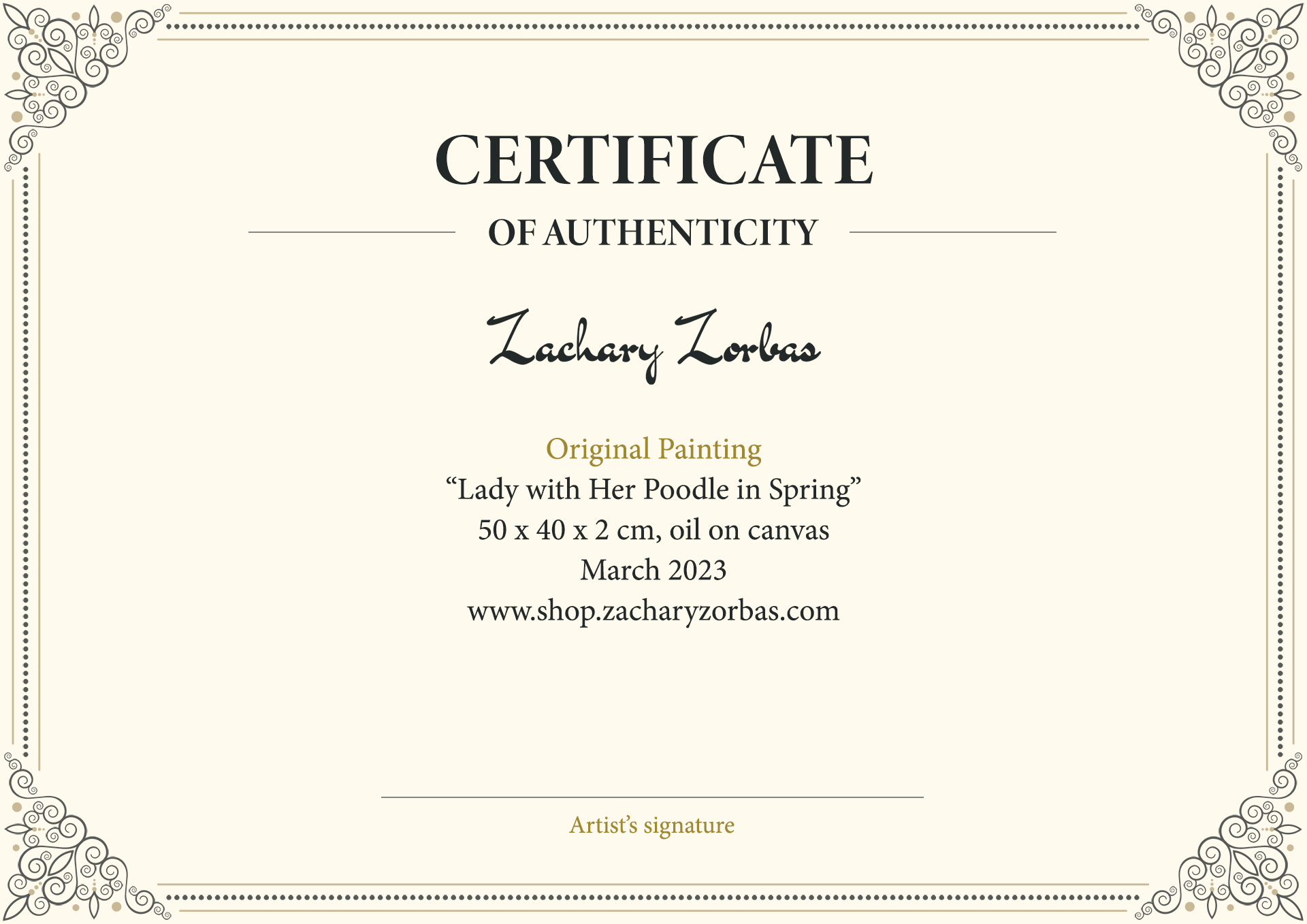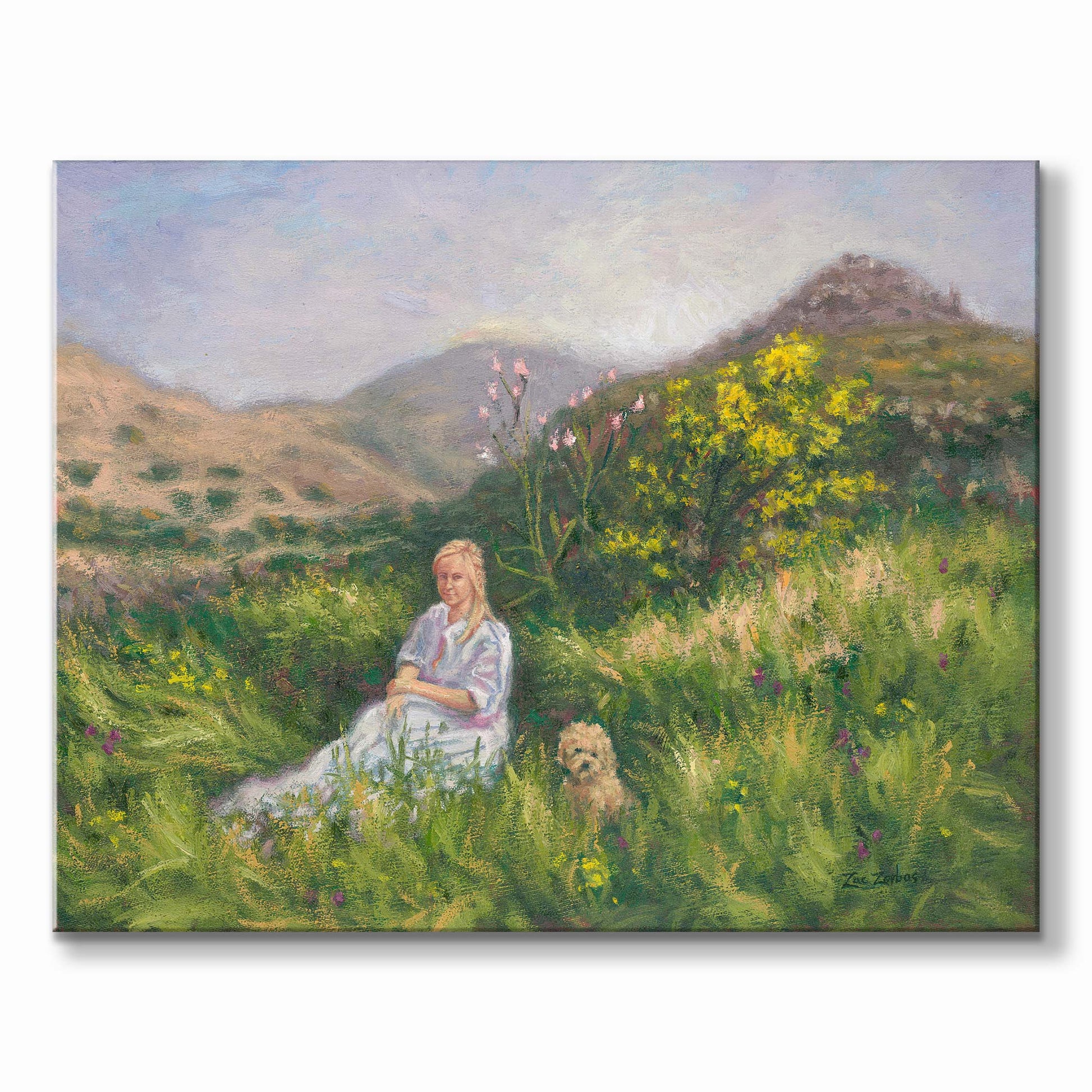 - Original painting by Zachary Zorbas titled "Lady and Her Poodle in Aegina Springtime" handmade in Aegina, Greece